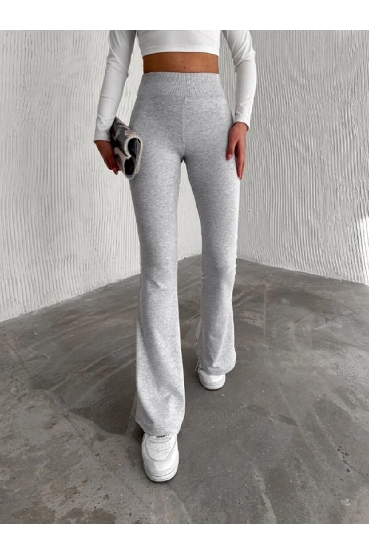 Kadın İspanyol Paça Tayt Pantolon GENİŞ KEMER RİBANALI 2440 XS - AÇIK GRİ