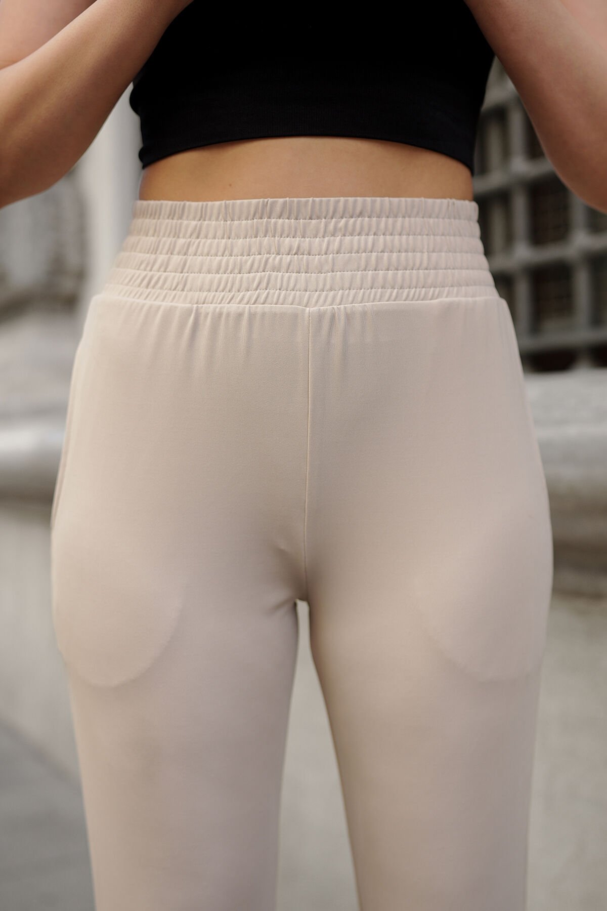 Kadın Bej Rengi Yüksek Bel Likralı Jogger Scuba Eşofman Altı S
