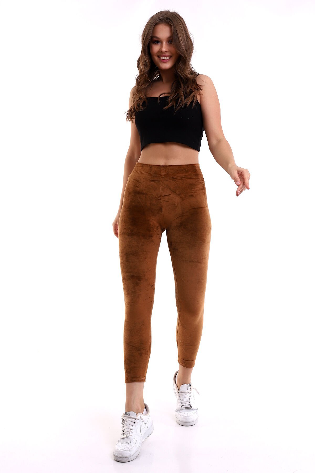 Kadife Tayt L - KAHVERENGİ