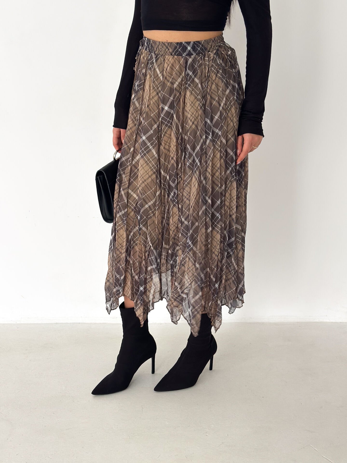 Kadın Astarlı Şifon Asimetrik Etek – Beli Lastikli Tesettür Uyumlu 2614 XL - 2 Çok Renkli