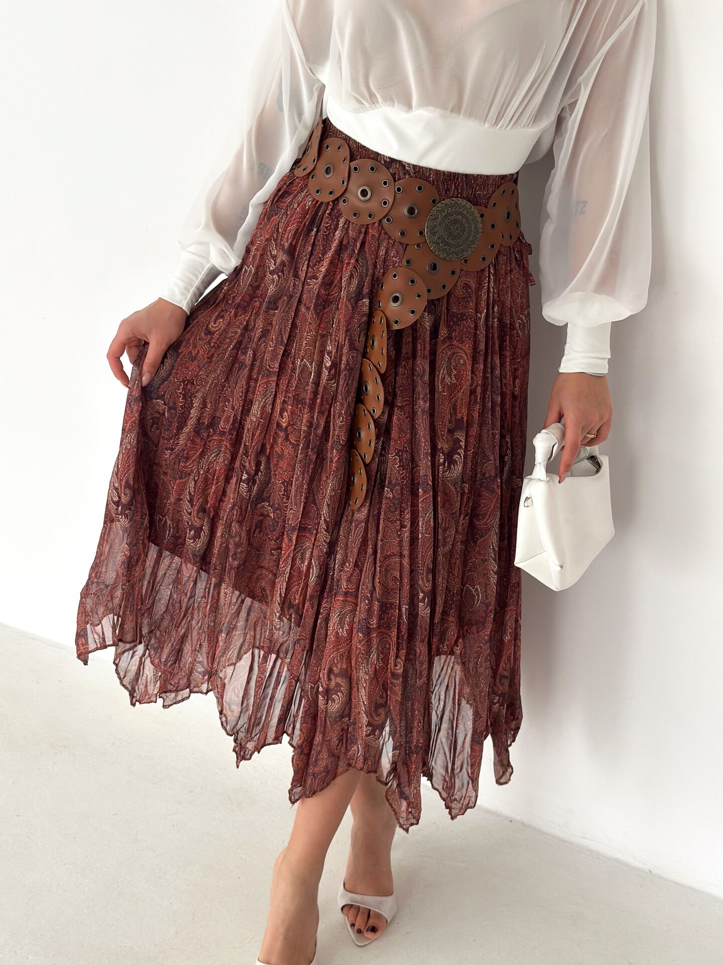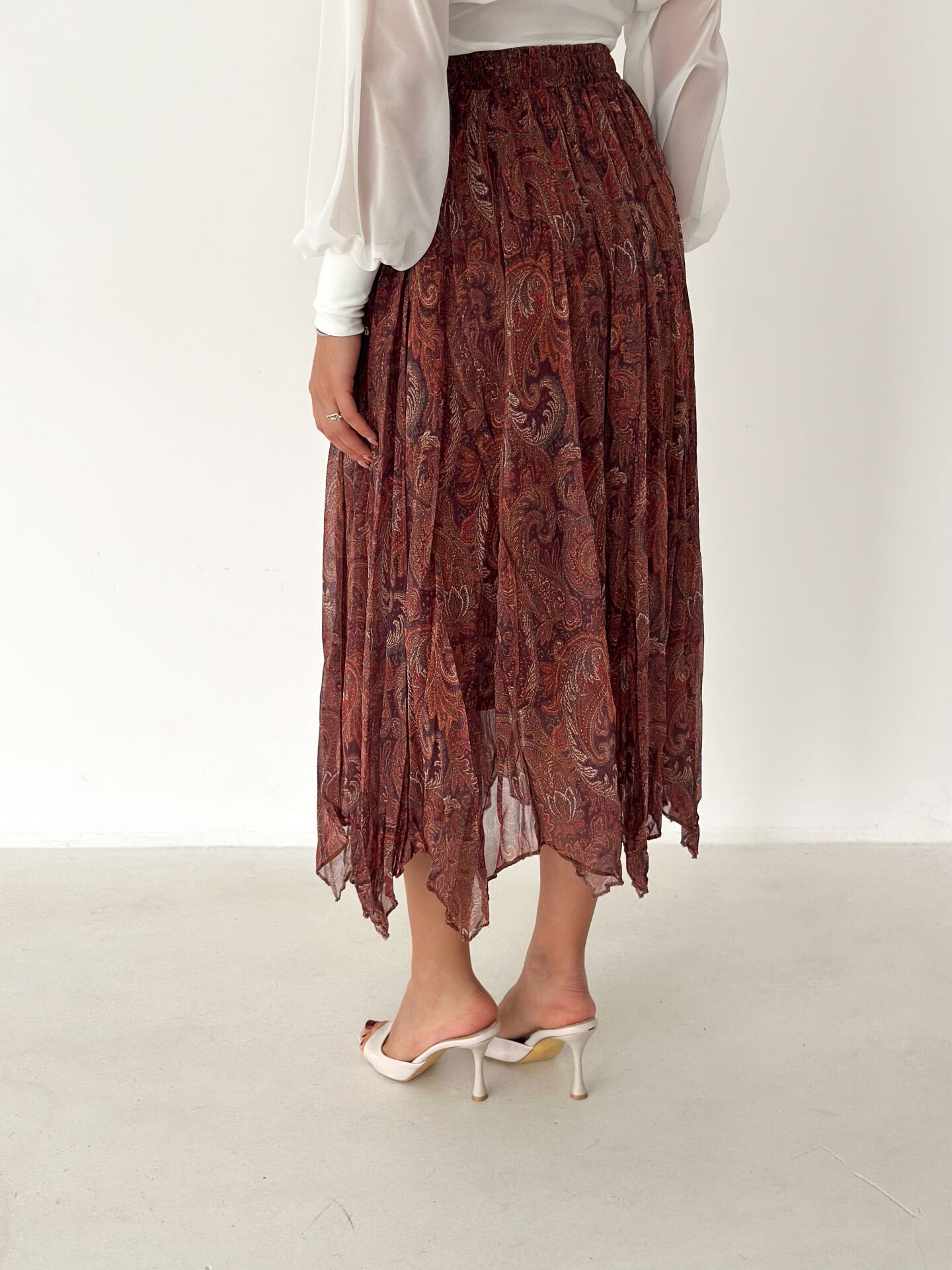 Kadın Astarlı Şifon Asimetrik Etek – Beli Lastikli Tesettür Uyumlu 2614 XL - 4 Çok Renkli