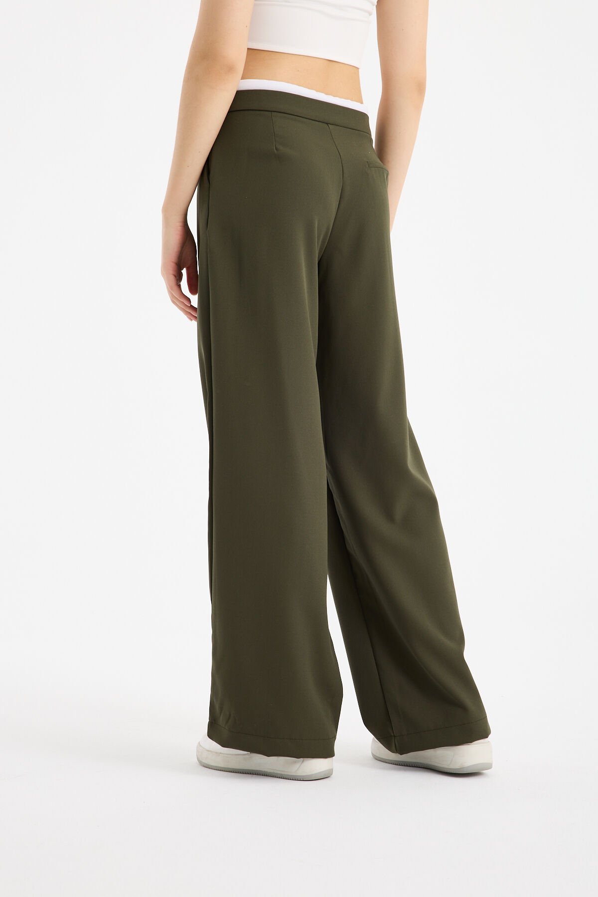 Kadın Çift Bel Bantlı Wide Leg Pantolon 1517 2XL - HAKİ