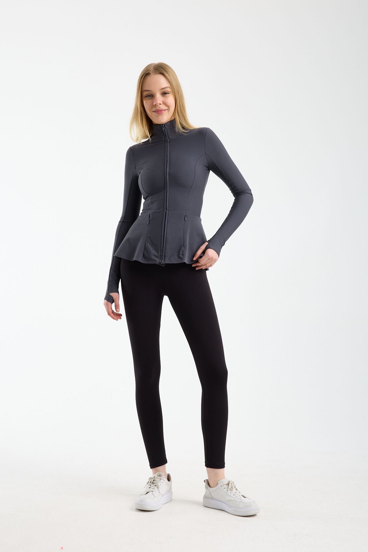 Ter tutmayan kumaş teknolojisiyle üretilen Kadın Dik Yaka Fermuarlı Volan Detaylı Esnek Spor Ceket, spor aktiviteleri, yürüyüş ve günlük kullanım için ideal bir tercihtir. Yan cep yapısı fonksiyonellik kazandırırken uzun silueti sayesinde farklı kombinlerle kolayca uyum sağlar.