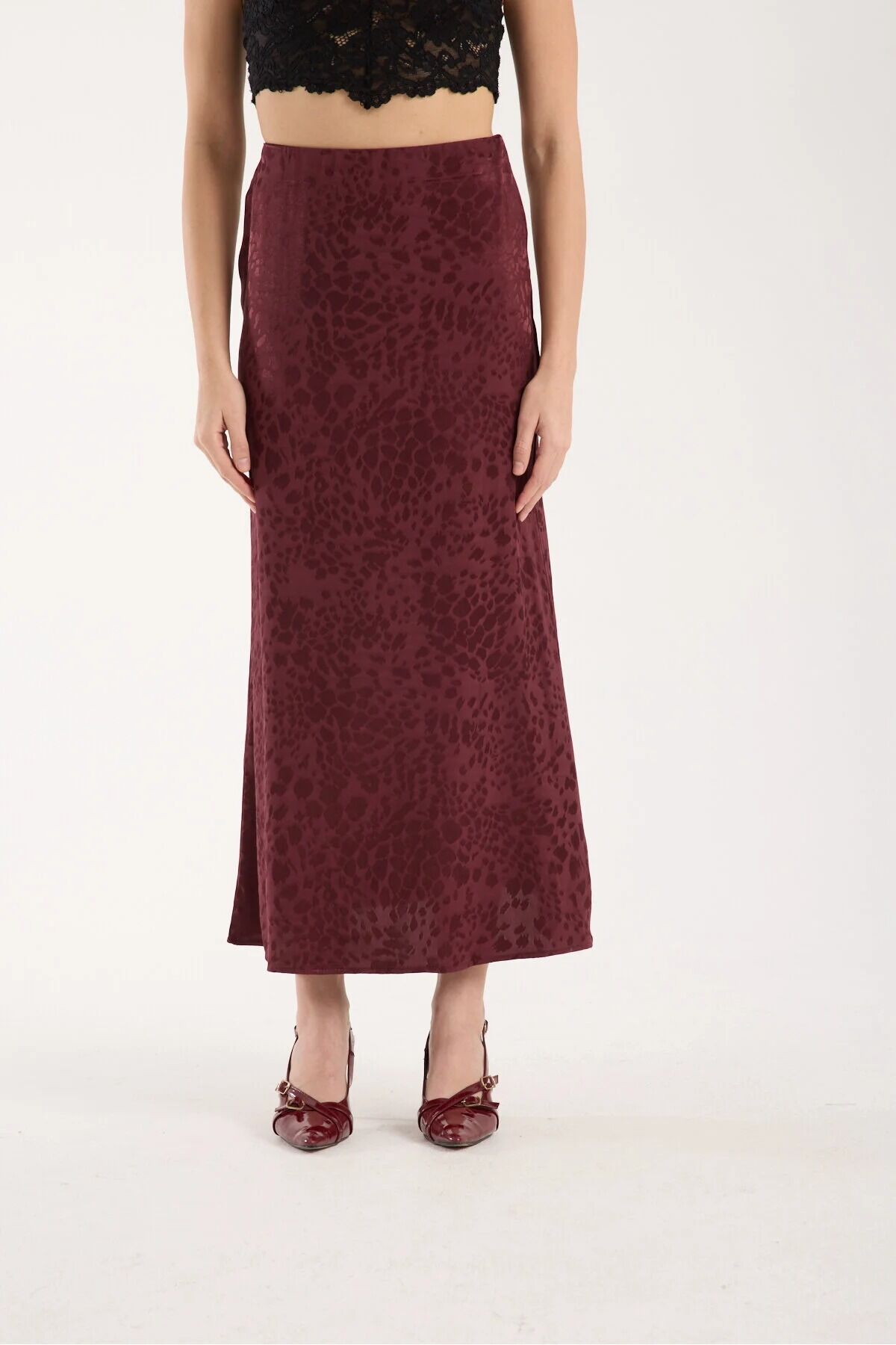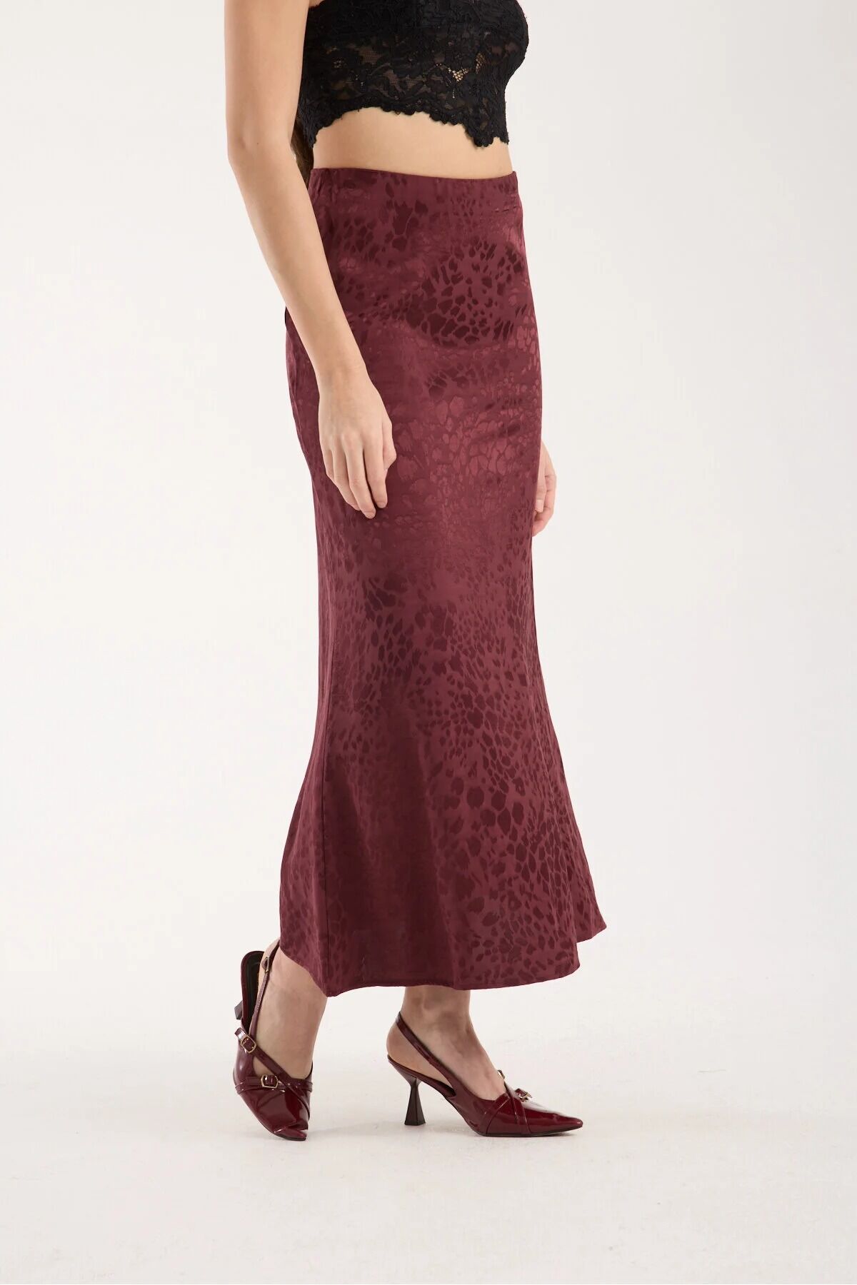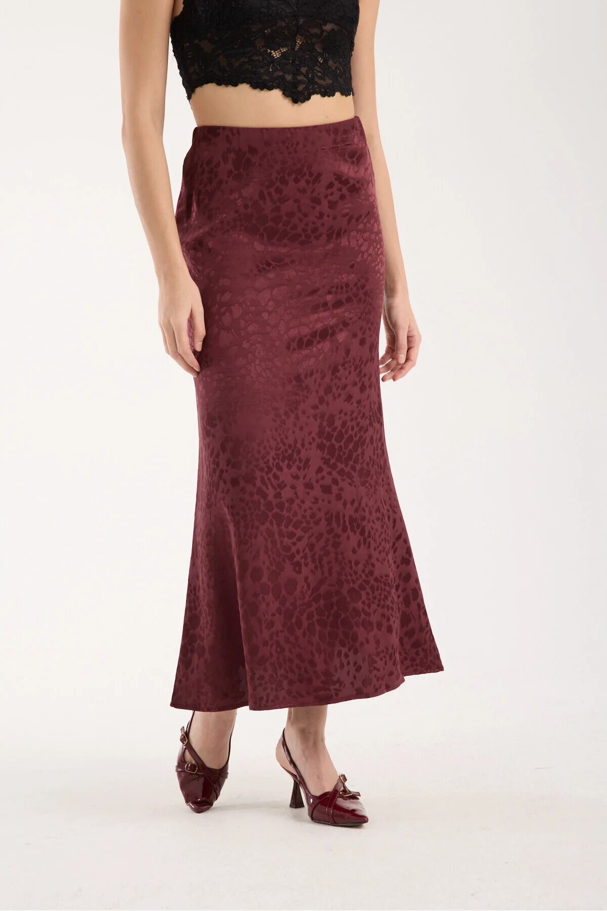 Kadın Dokulu 93cm Desenli Kloş Model Uzun Etek S - BORDO