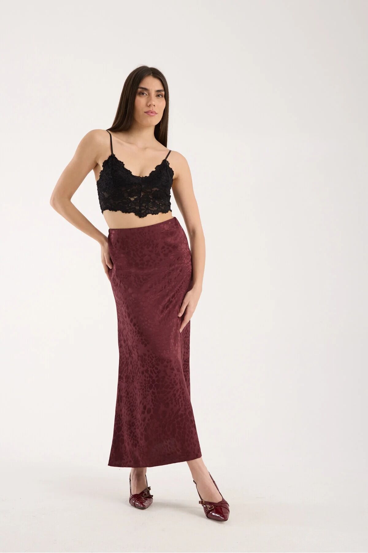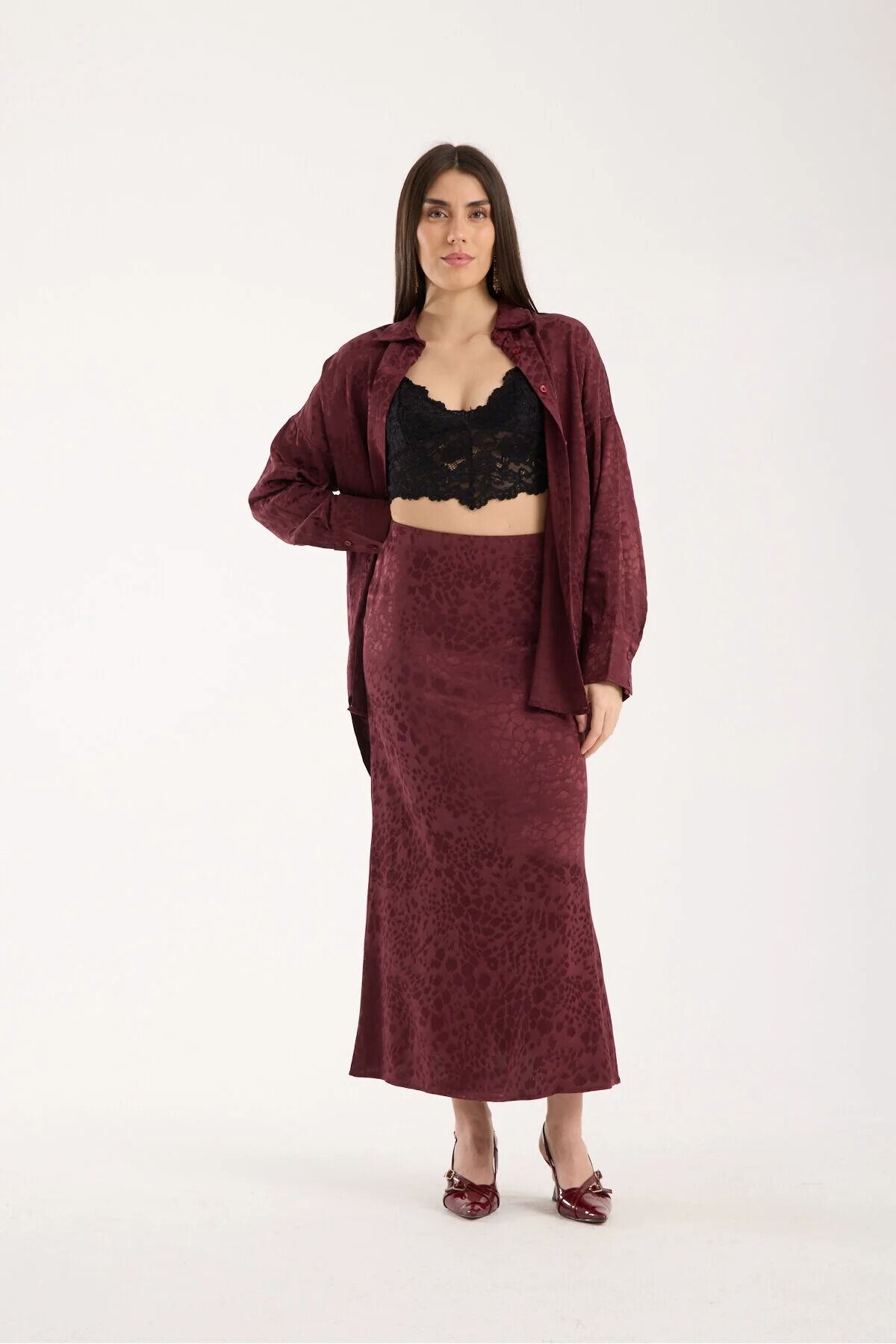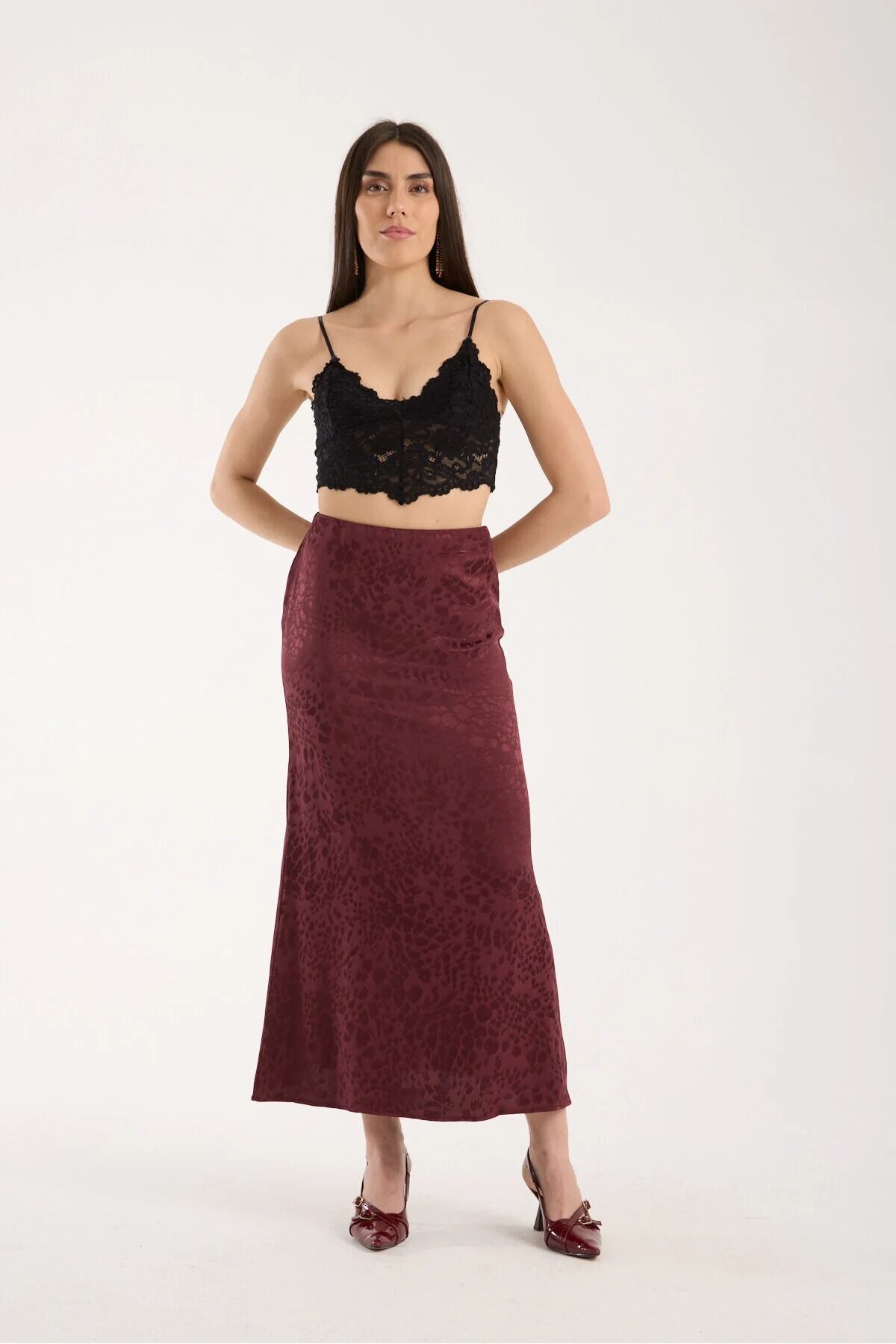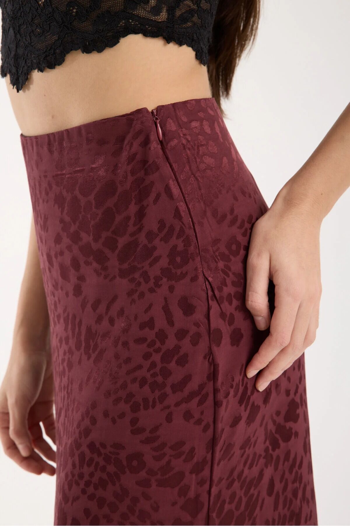 Kadın Dokulu 93cm Desenli Kloş Model Uzun Etek S - BORDO