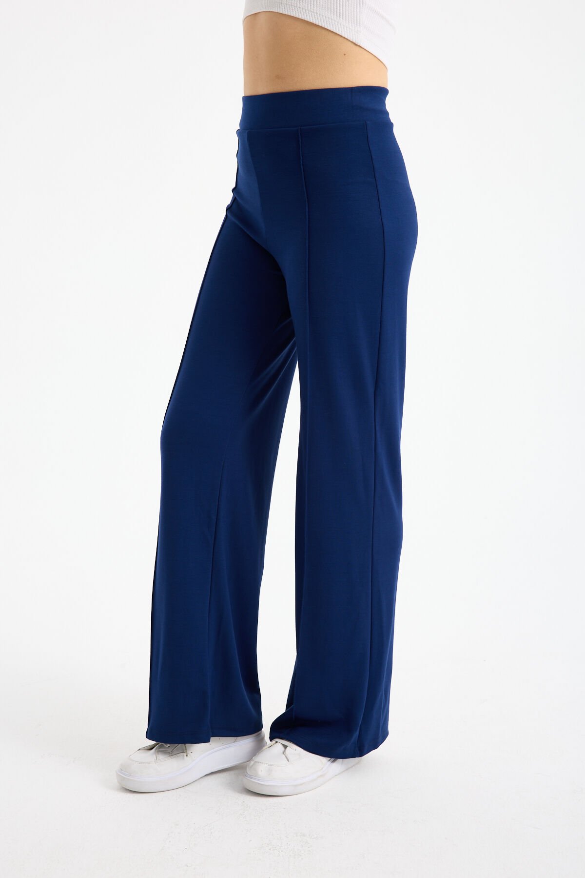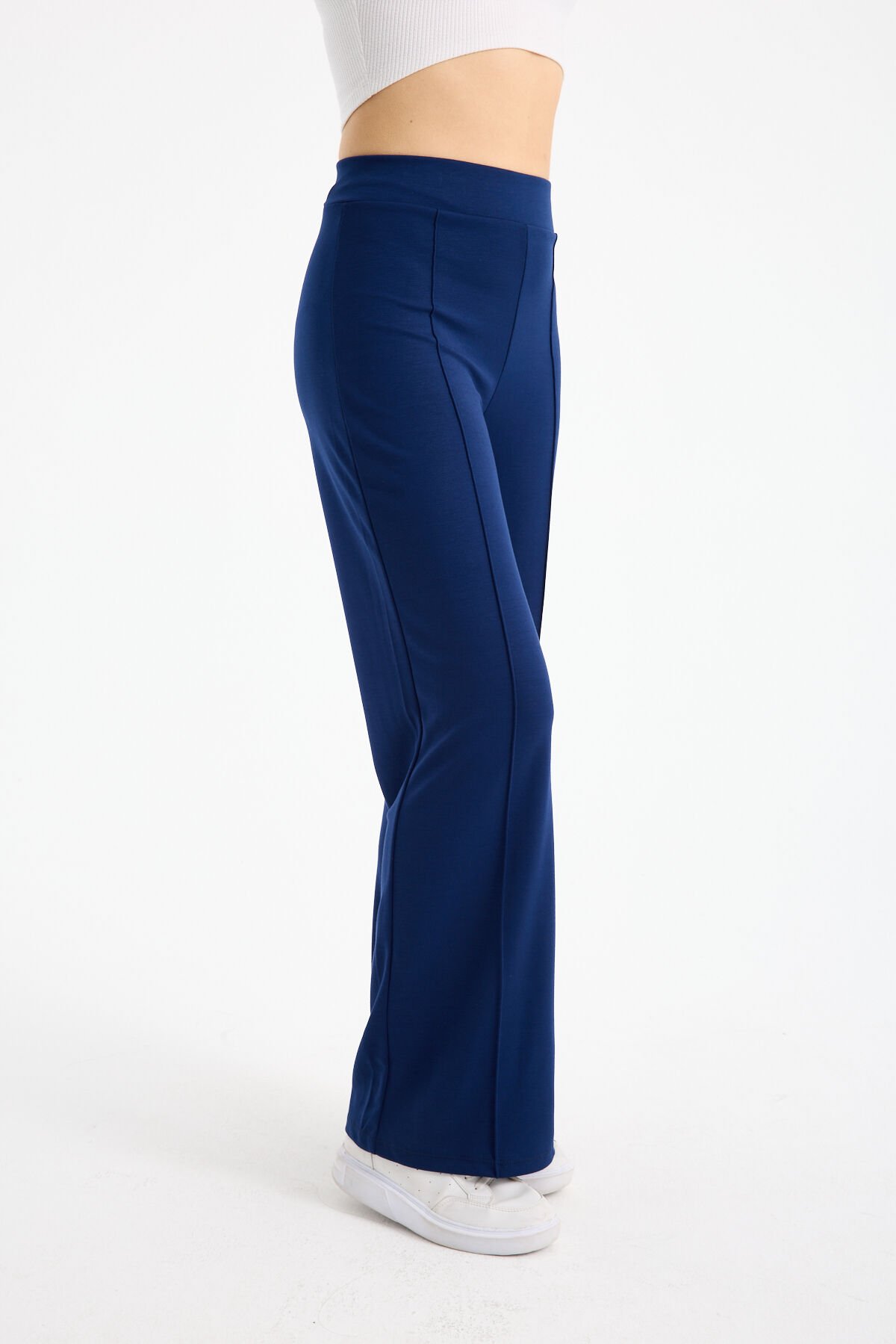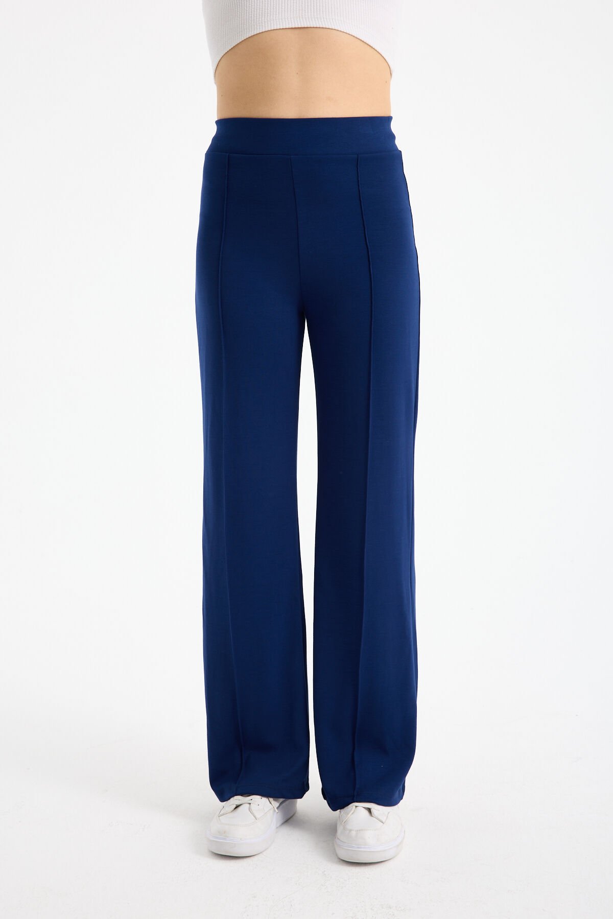 Kadın Dökümlü ve Dokulu Alt Ön Dikişli Esnek Eşofman Altı 2298 M - AÇIK LACİVERT