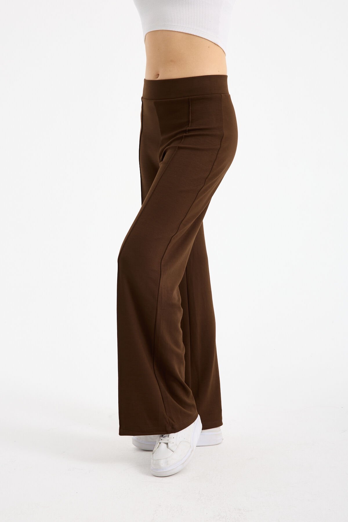 Kadın Dökümlü ve Dokulu Alt Ön Dikişli Esnek Eşofman Altı 2298 M - KAHVERENGİ
