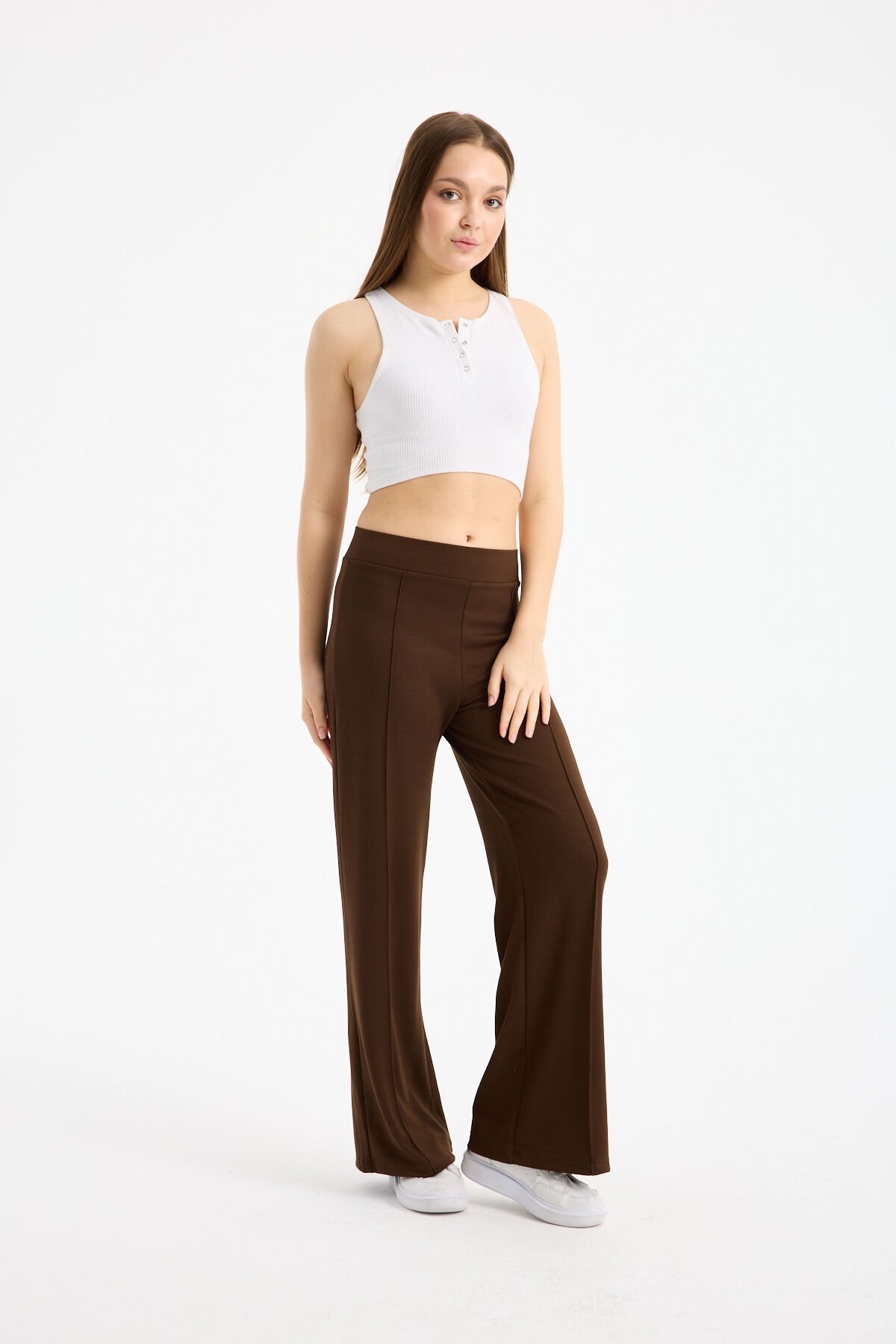 Kahverengi rengiyle doğal ve zamansız bir stil sunan bu model, basic üstler, sweatshirtler ve crop parçalarla kolayca kombinlenebilir. Casual ve günlük ortamlarda konforlu bir şıklık arayanlar için ideal bir alternatiftir. Yumuşak dokuma yapısı formunu uzun süre korur ve sık kullanıma uygundur.
