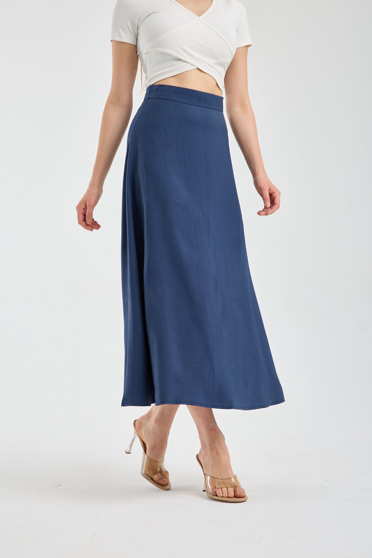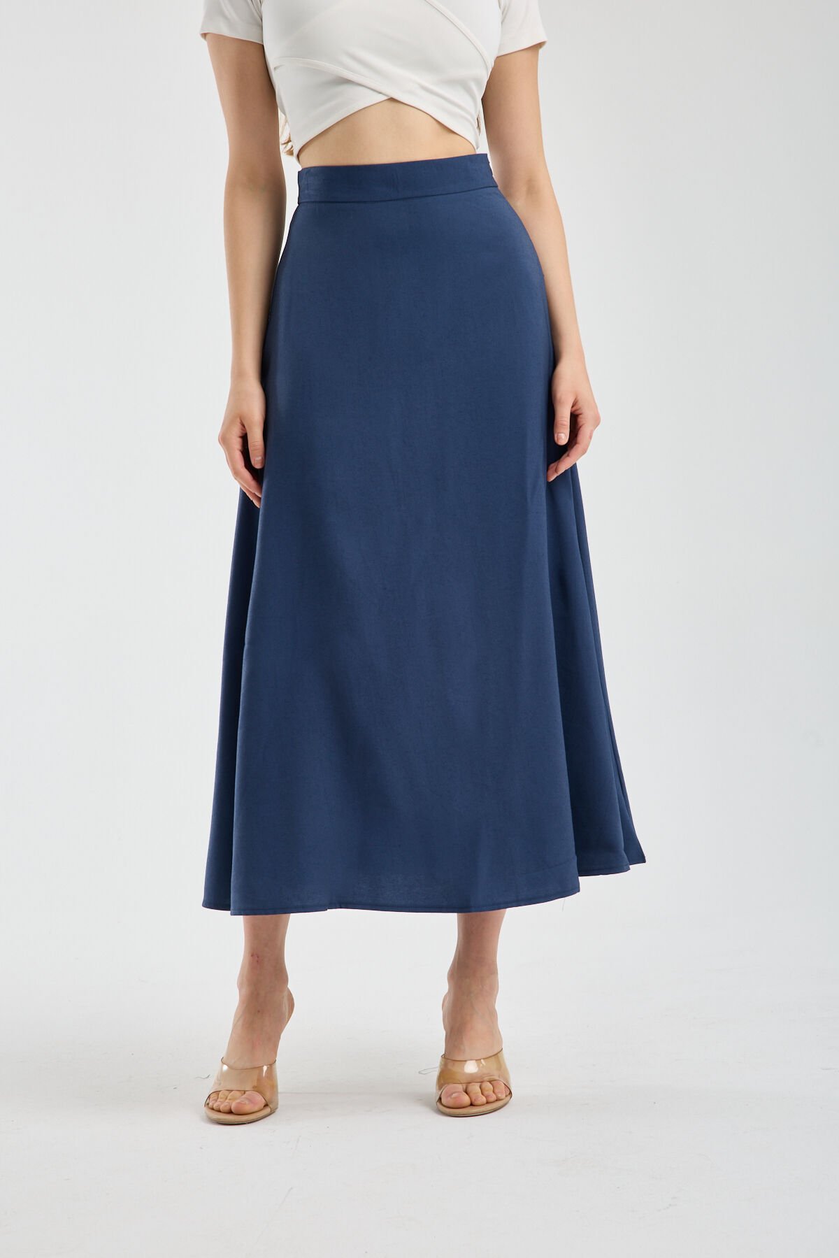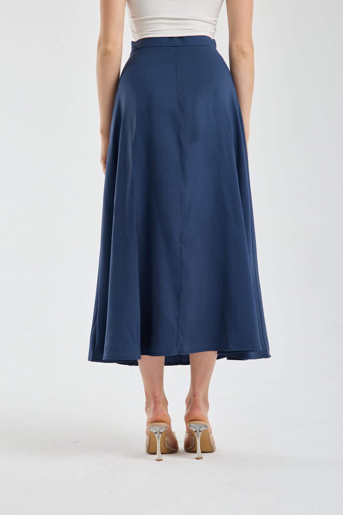 Kadın Dökümlü Yandan Fermuarlı Tesettür Uyumlu Uzun Kloş Etek 2512 S - LACİVERT