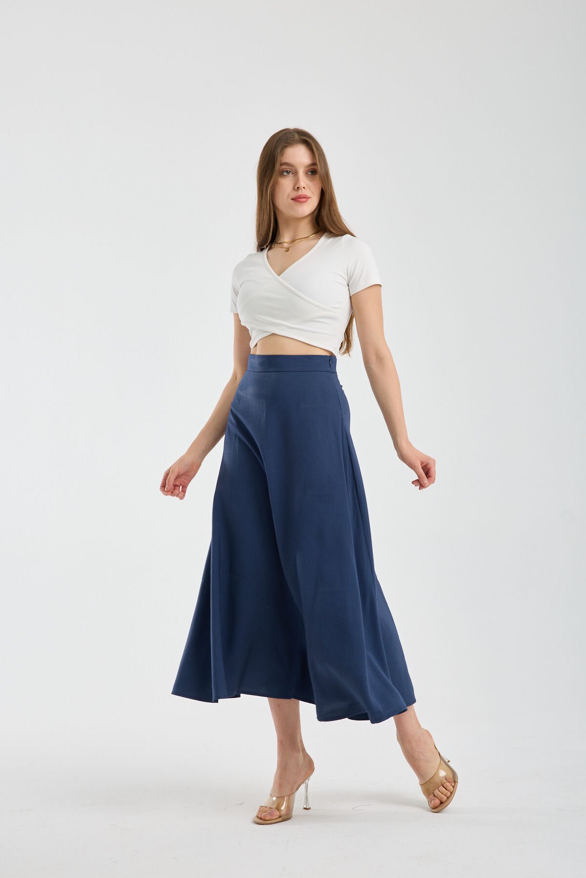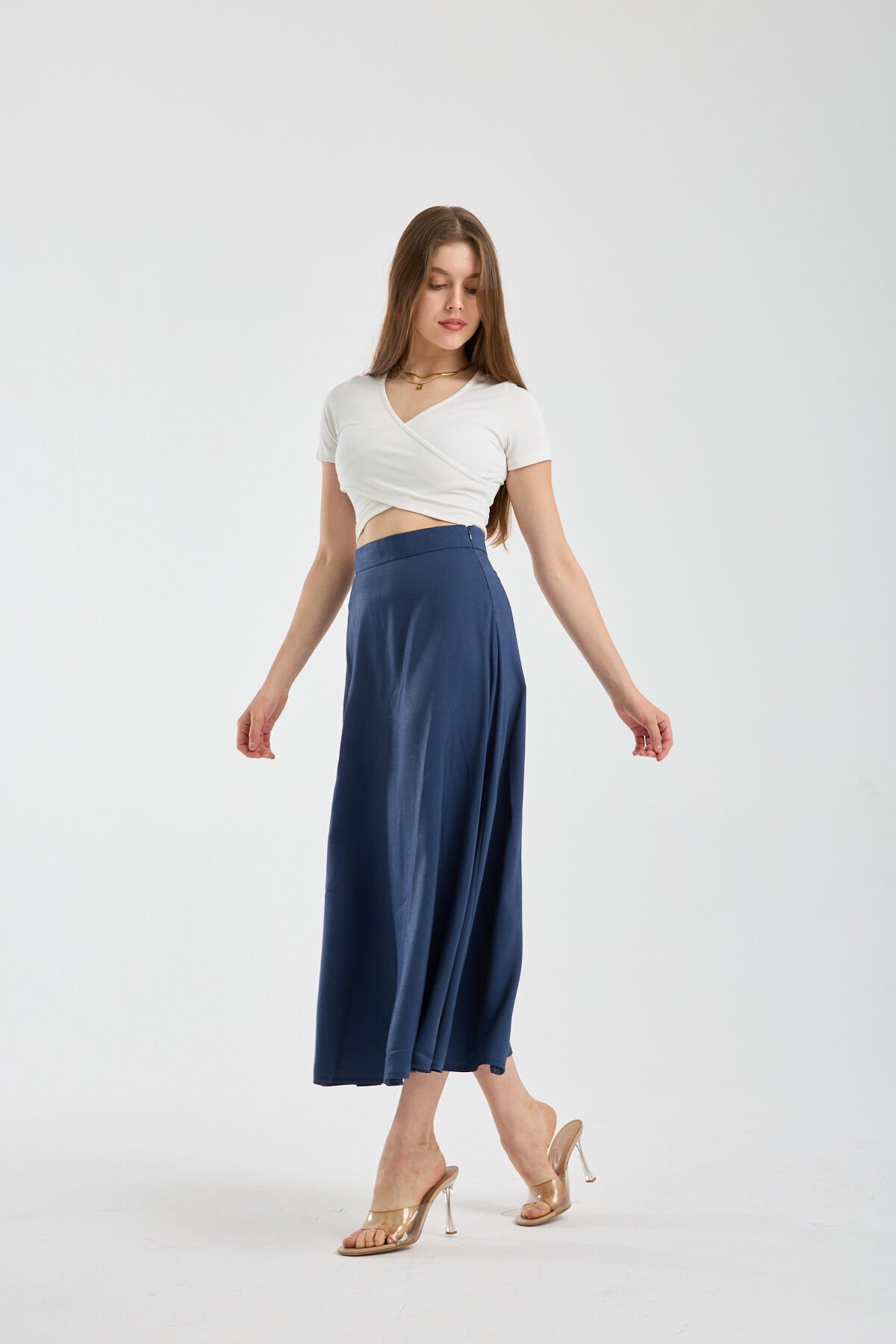 Dört mevsim kullanılabilen Kadın Dökümlü Yandan Fermuarlı Tesettür Uyumlu Uzun Kloş Etek, zamansız tasarımı ve kaliteli yapısıyla gardırobun vazgeçilmez parçalarından biridir.