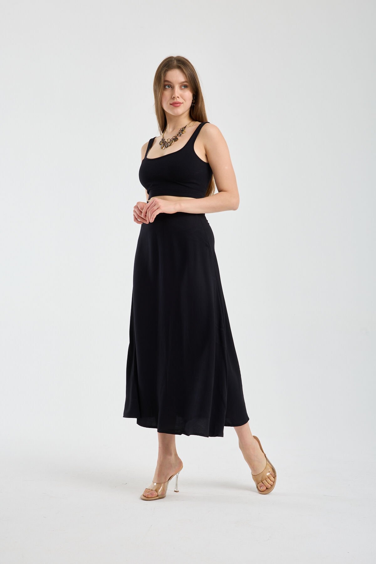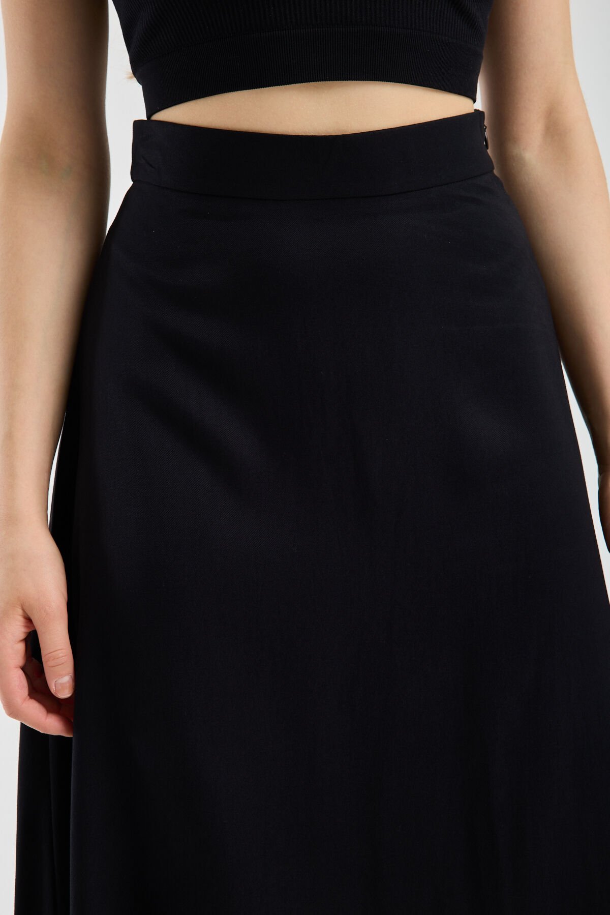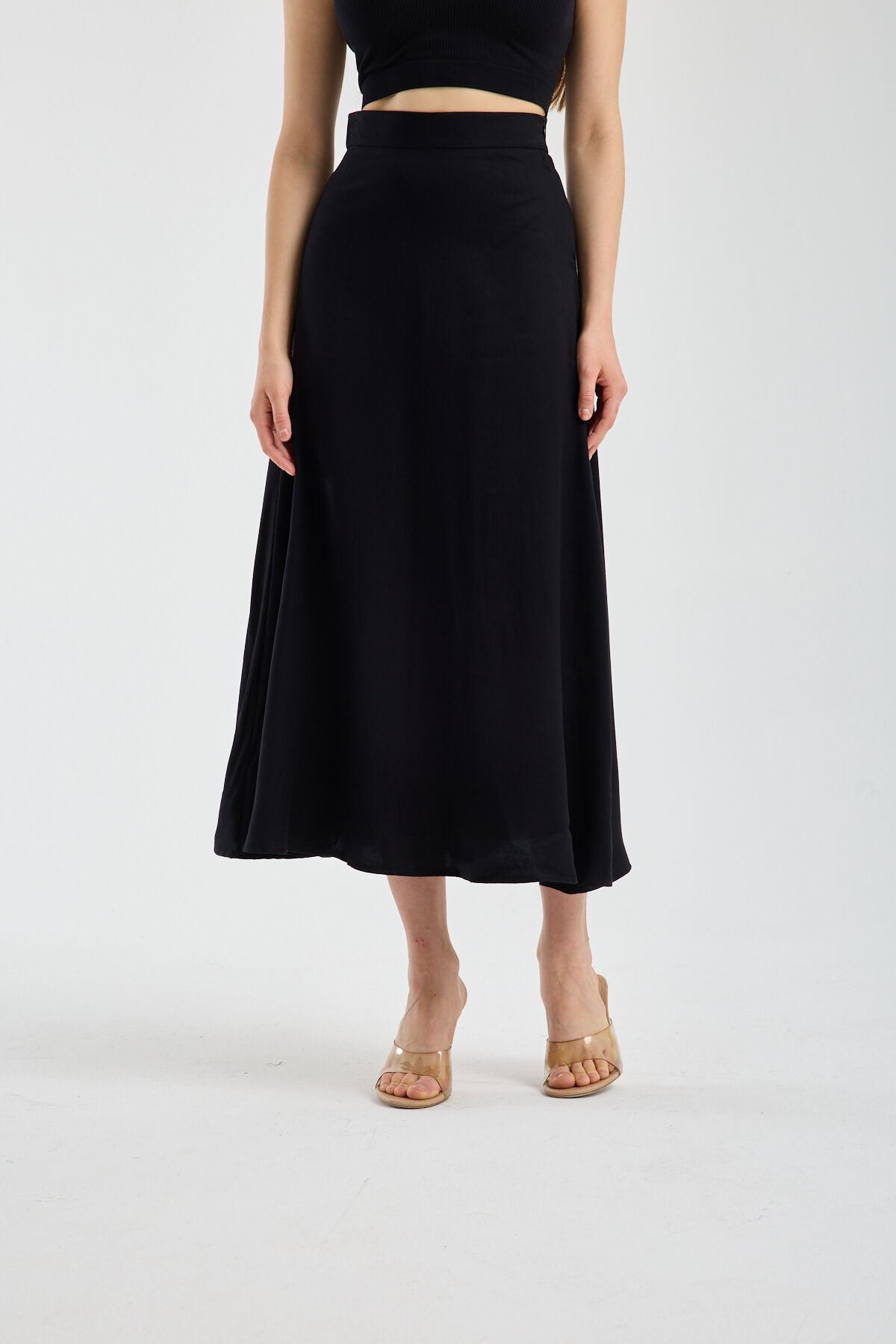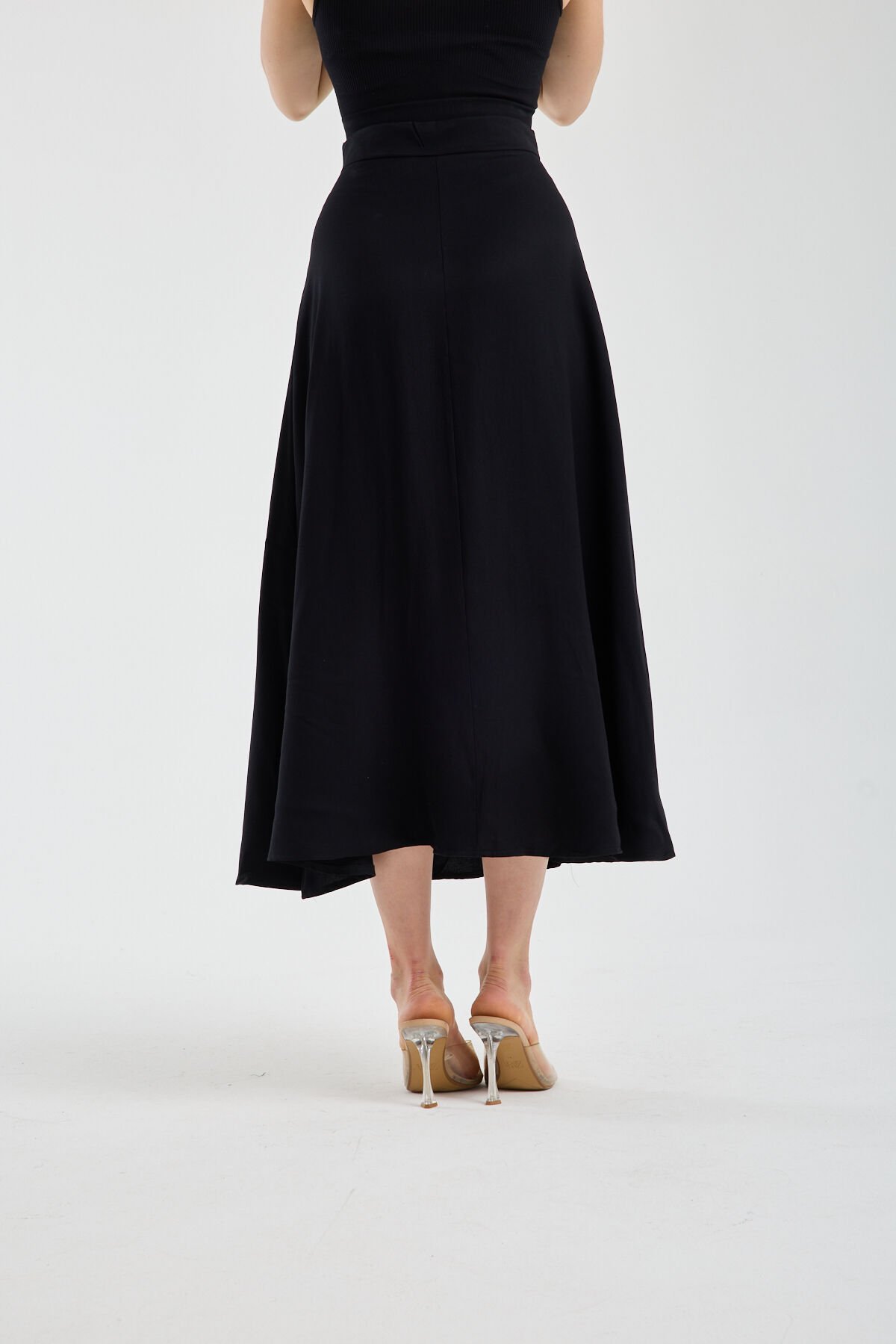 Kadın Dökümlü Yandan Fermuarlı Tesettür Uyumlu Uzun Kloş Etek 2512 S - SİYAH