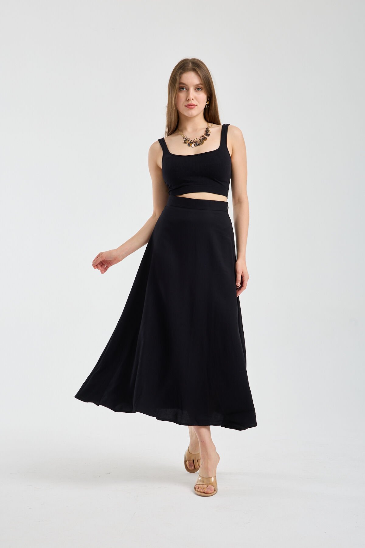 Kadın Dökümlü Yandan Fermuarlı Tesettür Uyumlu Uzun Kloş Etek 2512 XL - SİYAH