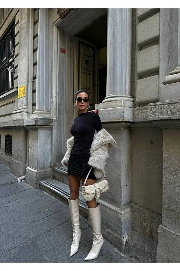 Mini boy kesimi ile dinamik ve iddialı bir stil sunan bu model; topuklu ayakkabı, bot ve minimal aksesuarlarla kolayca kombinlenebilir. Giy-çık koleksiyonuna ait olan Kadın Drapeli Mini Boy Kol ve Yan Büzgülü Mini Elbise, gece davetlerinden trend günlük kombinlere kadar geniş kullanım alanı sunar.