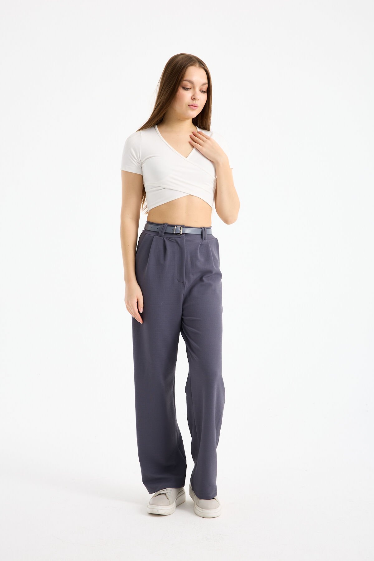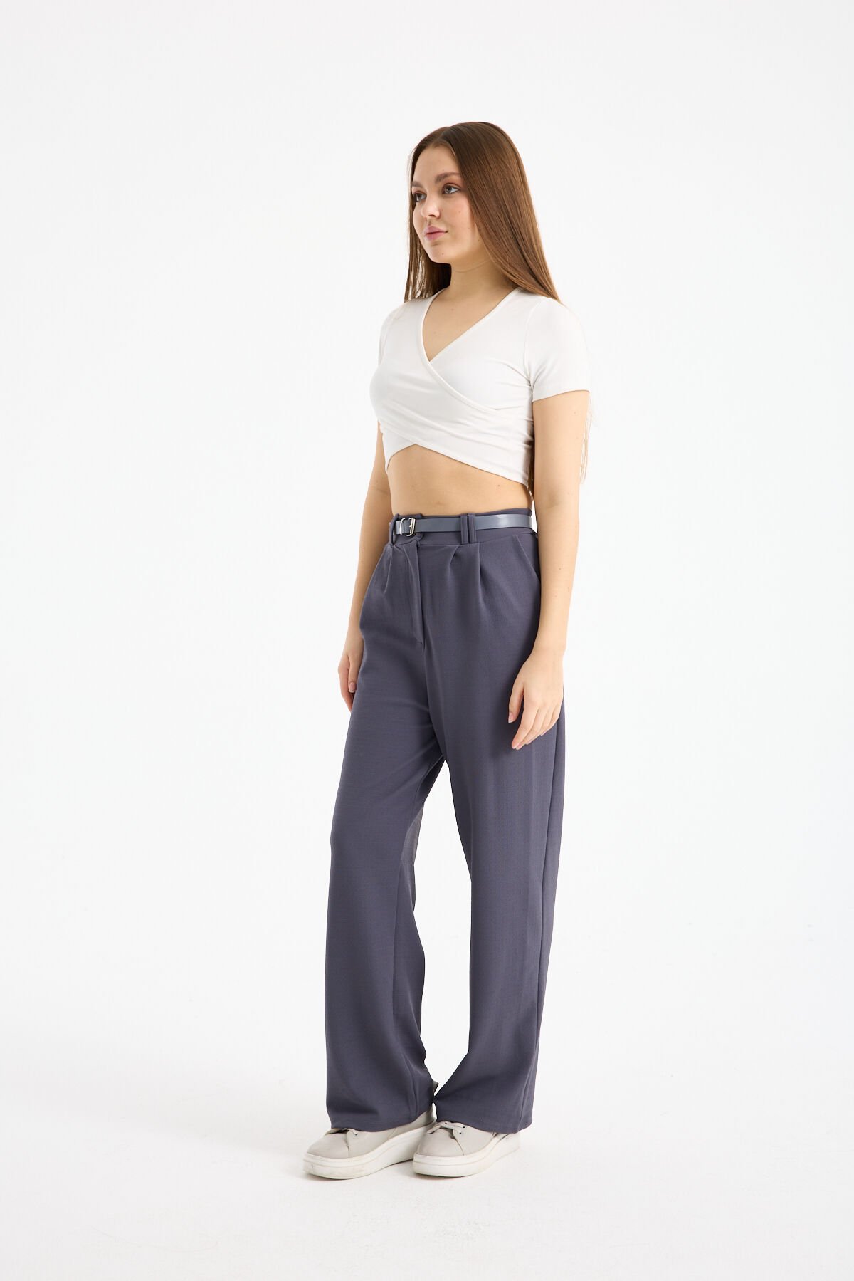 Kadın Esnek Ön Kemerli Ağaç Kabuğu Kumaş Pantolon 2461 S - ANTRASİT KOYU GRİ