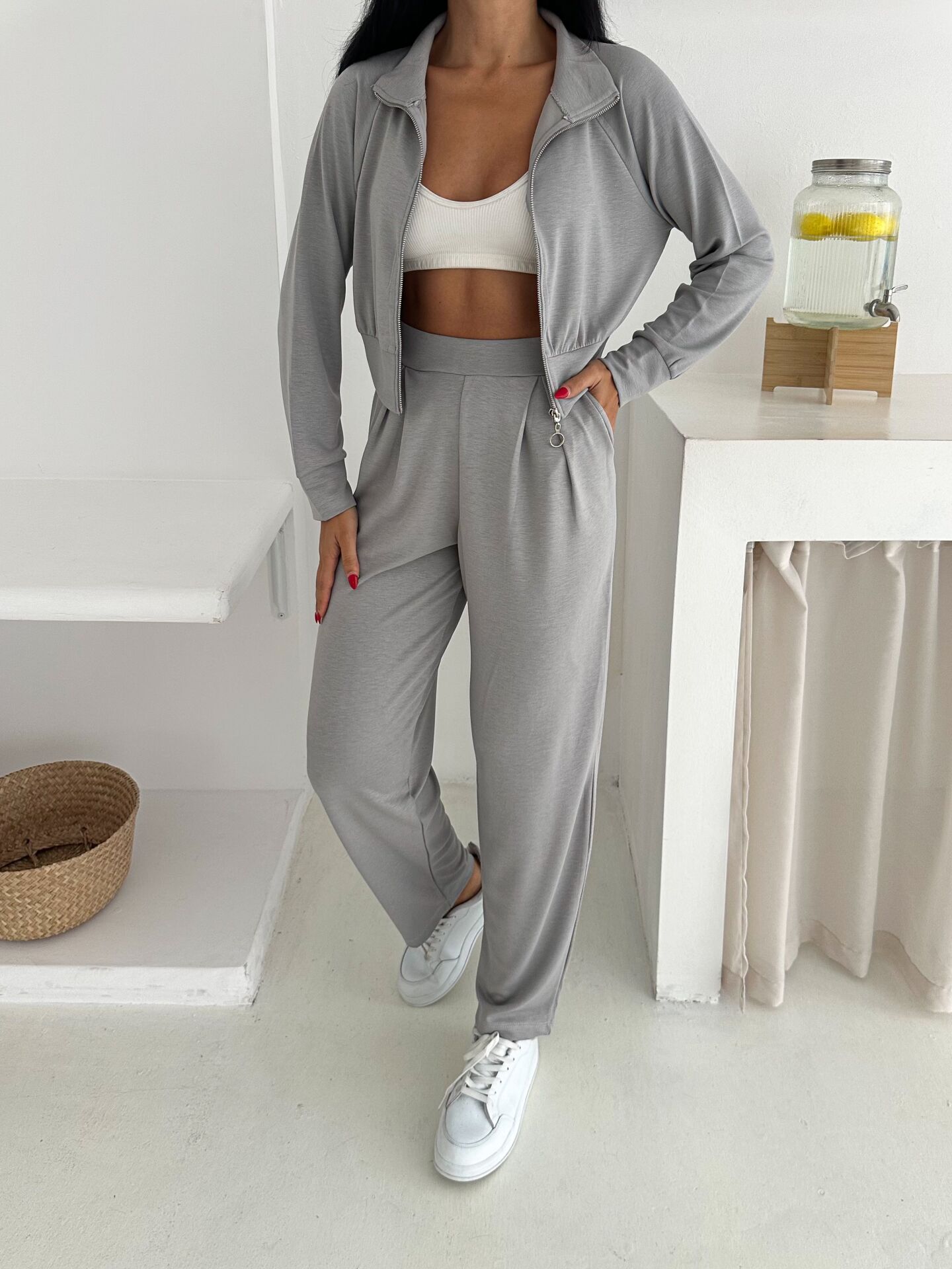 Kadın Fermuarlı Geniş Manşetli Günlük ve Spor Alt Üst Takım 2576 XL - AÇIK GRİ