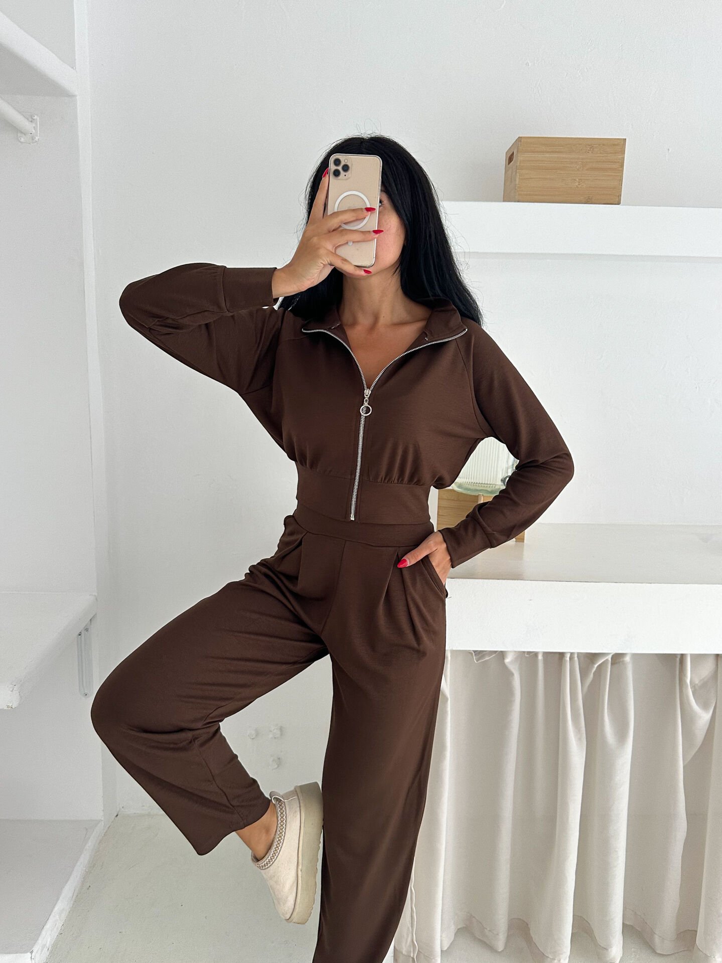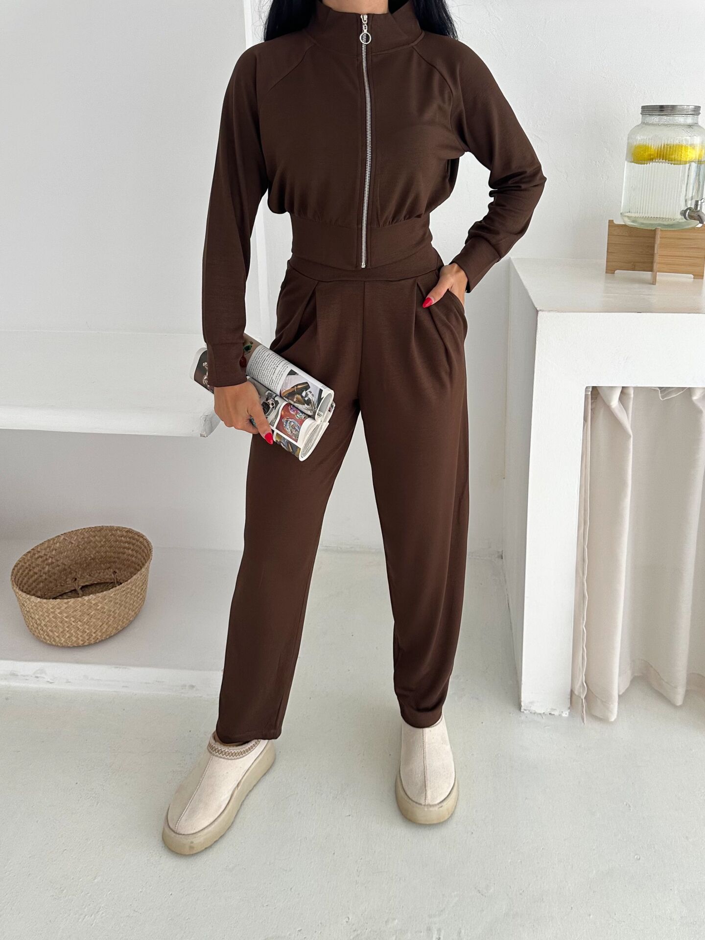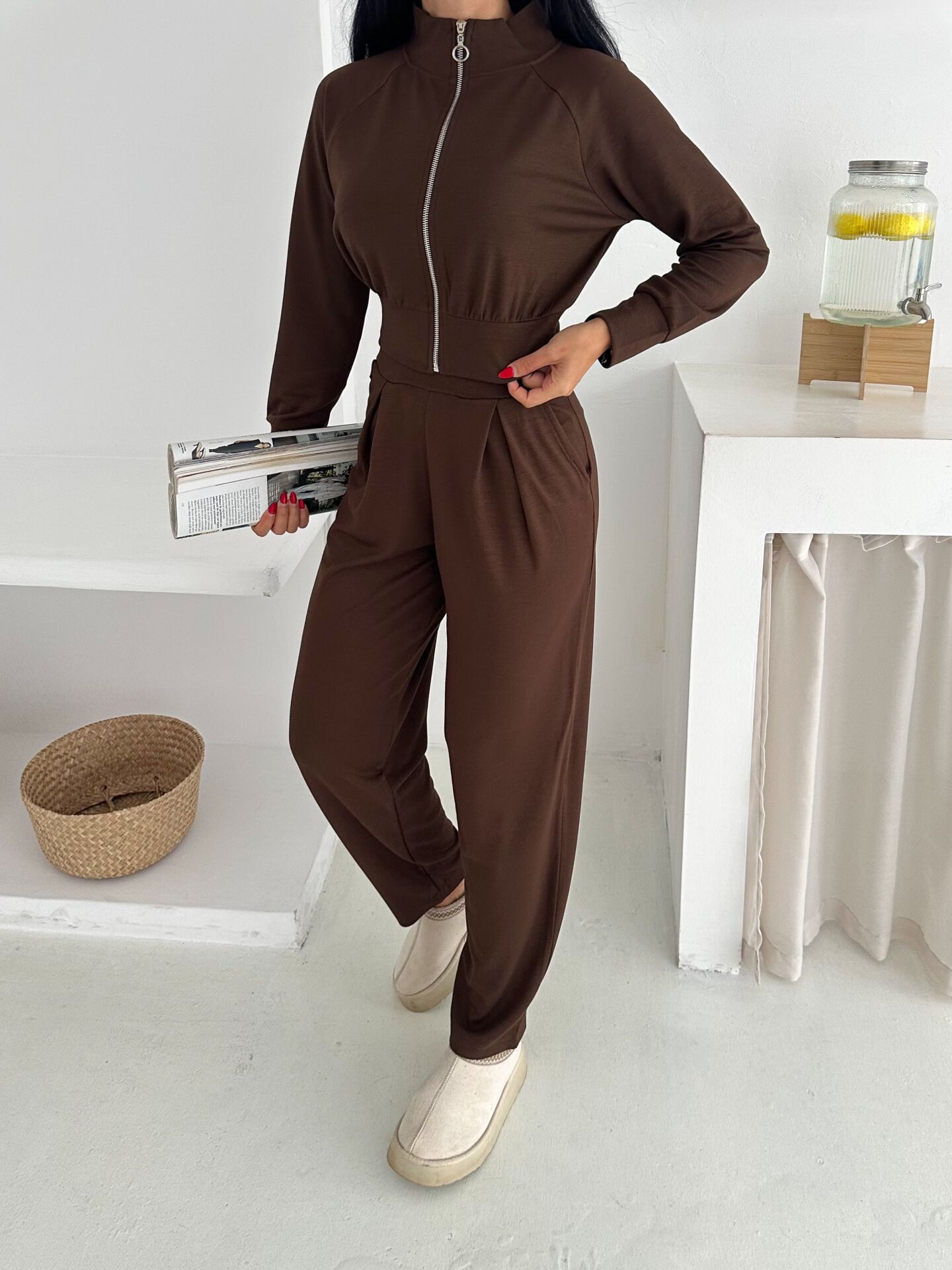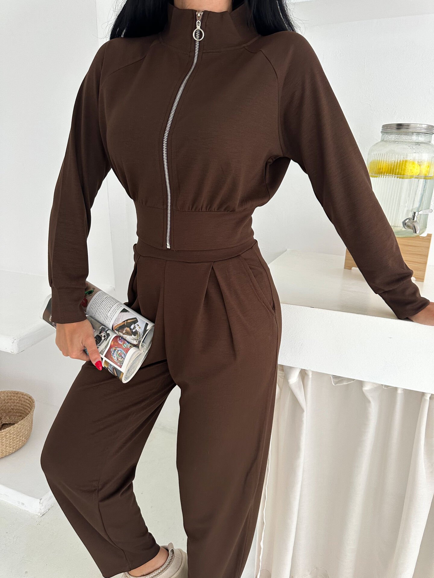 Kadın Fermuarlı Geniş Manşetli Günlük ve Spor Alt Üst Takım 2576 XL - KAHVERENGİ