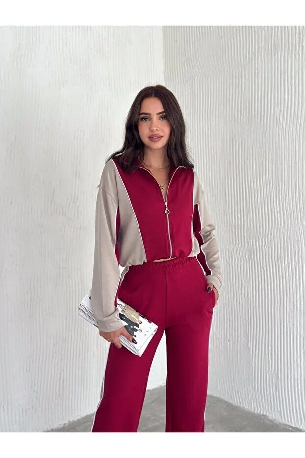 Modal kumaştan özel olarak üretilmiş olan bu takım, hem sweatshirt hem pantolonun ayrı ayrı da kullanılabilmesi sayesinde yüksek işlevsellik sunar. Biyeli detayları ve çizgili modern görünümü ile zamansız bir stil oluşturur.
