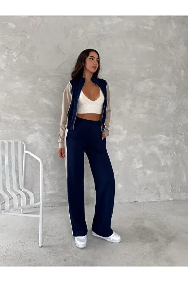 Modal kumaştan özel olarak üretilmiş olan bu takım, hem sweatshirt hem pantolonun ayrı ayrı da kullanılabilmesi sayesinde yüksek işlevsellik sunar. Biyeli detayları ve çizgili modern görünümü ile zamansız bir stil oluşturur.