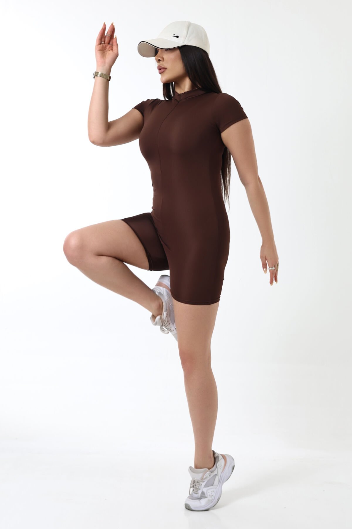 Kadın Fermuarlı Günlük Deniz ve Havuz Şortlu Tulum hem havuz başında hem de plaj aktivitelerinde konforlu bir kullanım sunar. Özel Dalgıç/Scuba dokuma teknolojisi ve Süper Esnek kumaş yapısı sayesinde vücuda tam uyum sağlarken hareket özgürlüğünü kısıtlamaz. Düz desenli kahverengi tasarımı, basic siluetiyle birleşerek plaj tekstili koleksiyonunda zamansız bir parça olarak öne çıkar.
