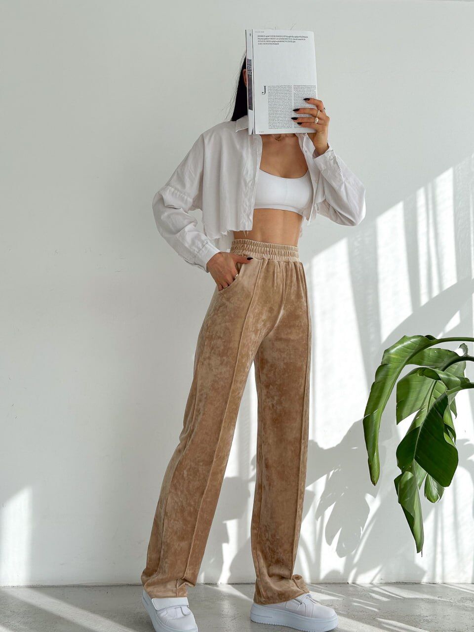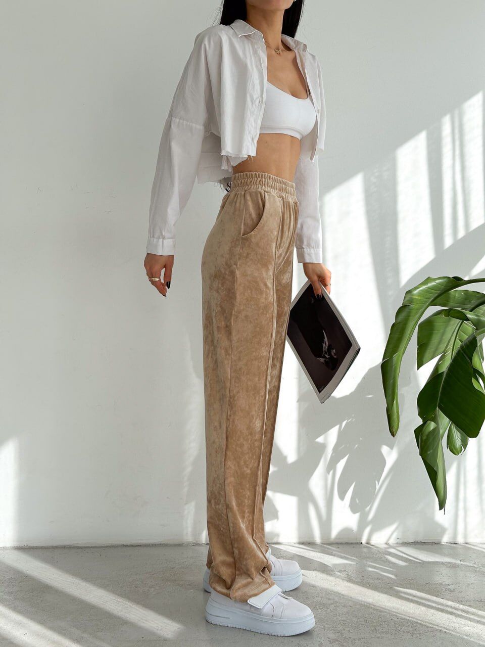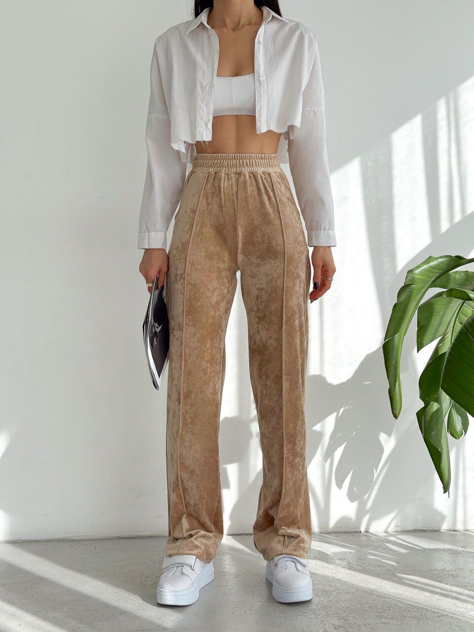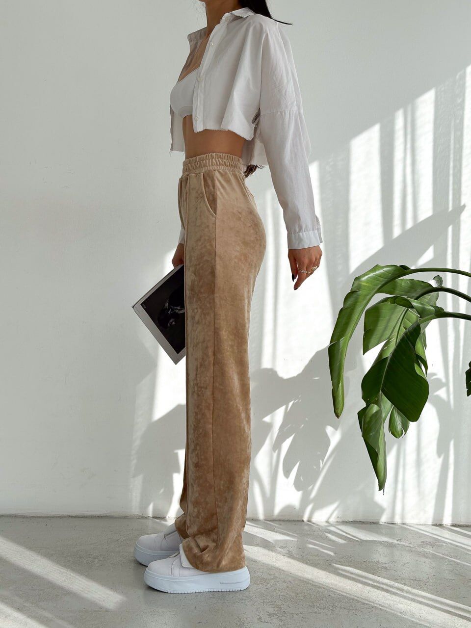 Kadın Geniş Paça Max Boy Kadife Pantolon 2251 L - BEJ