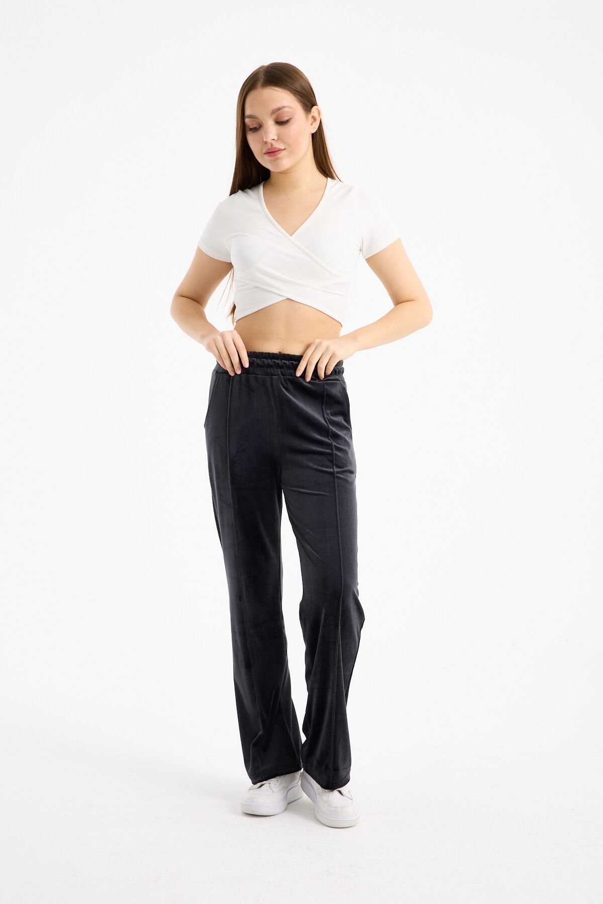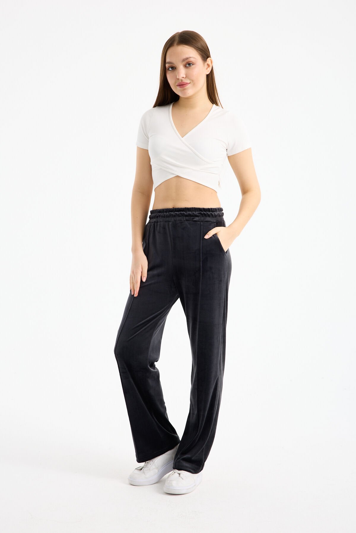 Kadın Geniş Paça Max Boy Kadife Pantolon 2251 M - KÜLSİYAH