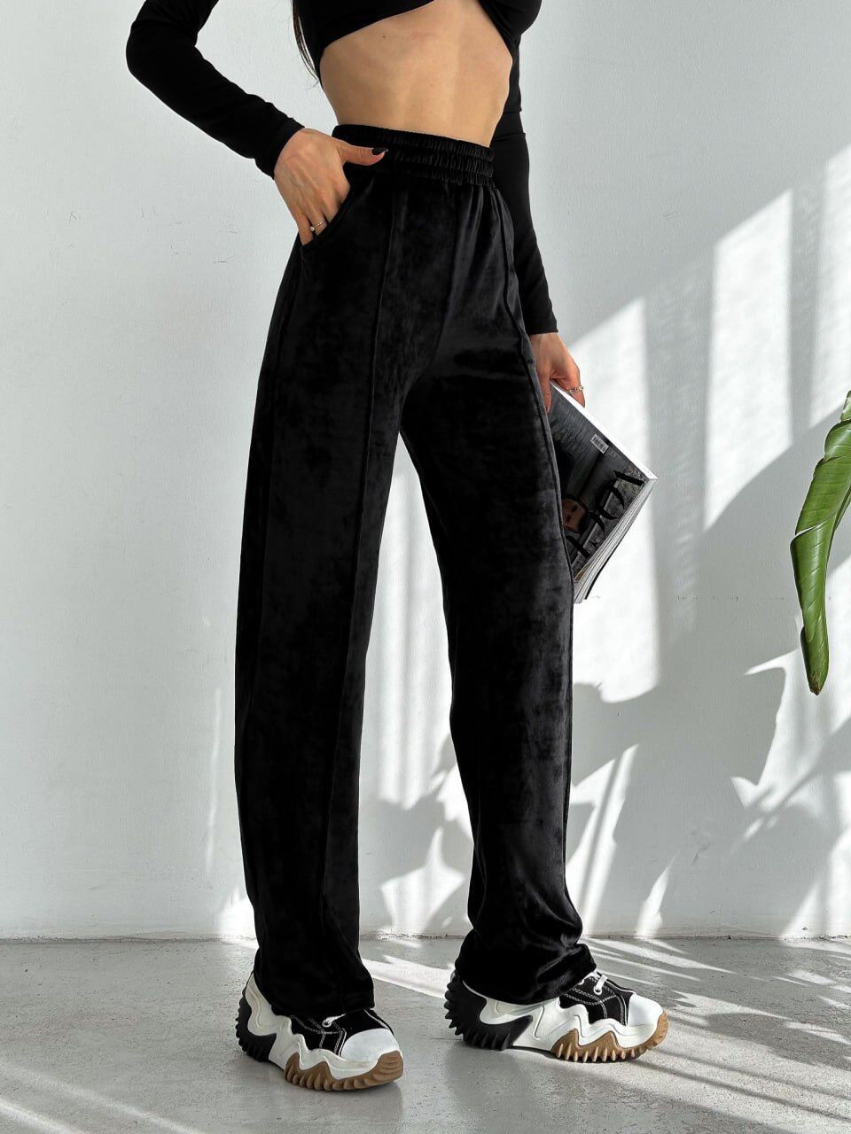 Kadın Geniş Paça Max Boy Kadife Pantolon 2251 M - SİYAH