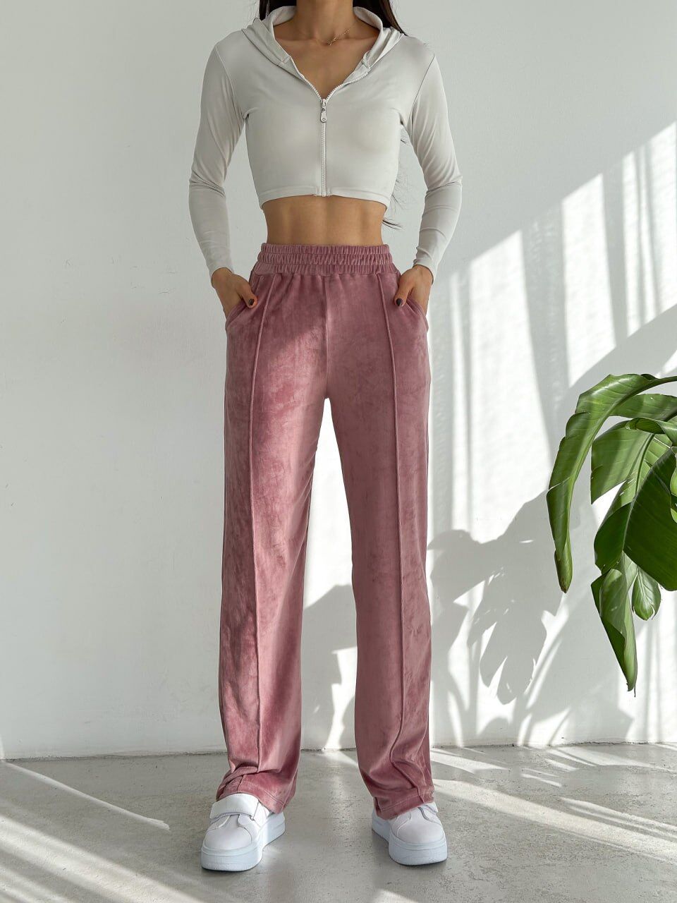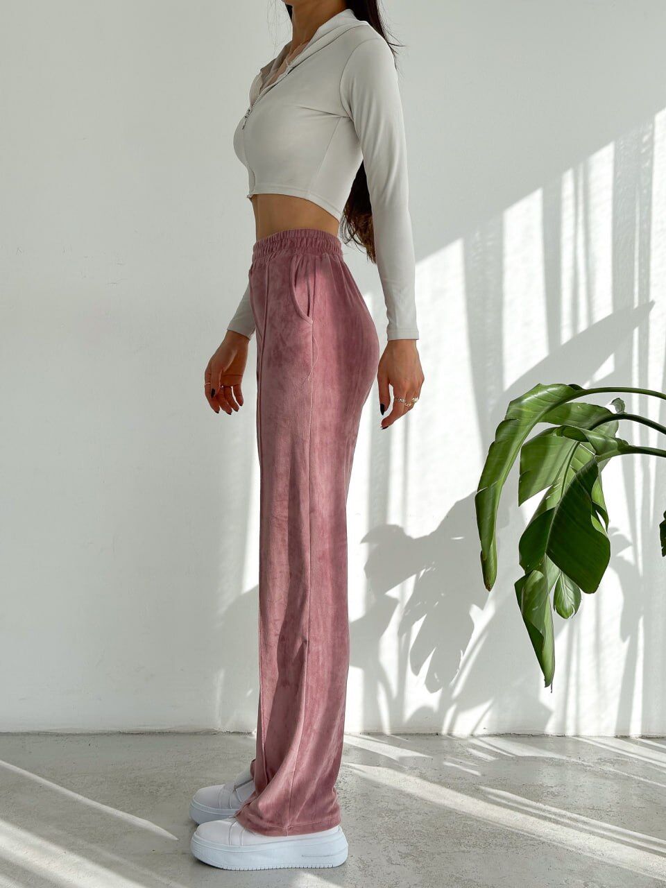 Kadın Geniş Paça Max Boy Kadife Pantolon 2251 S - PEMBE