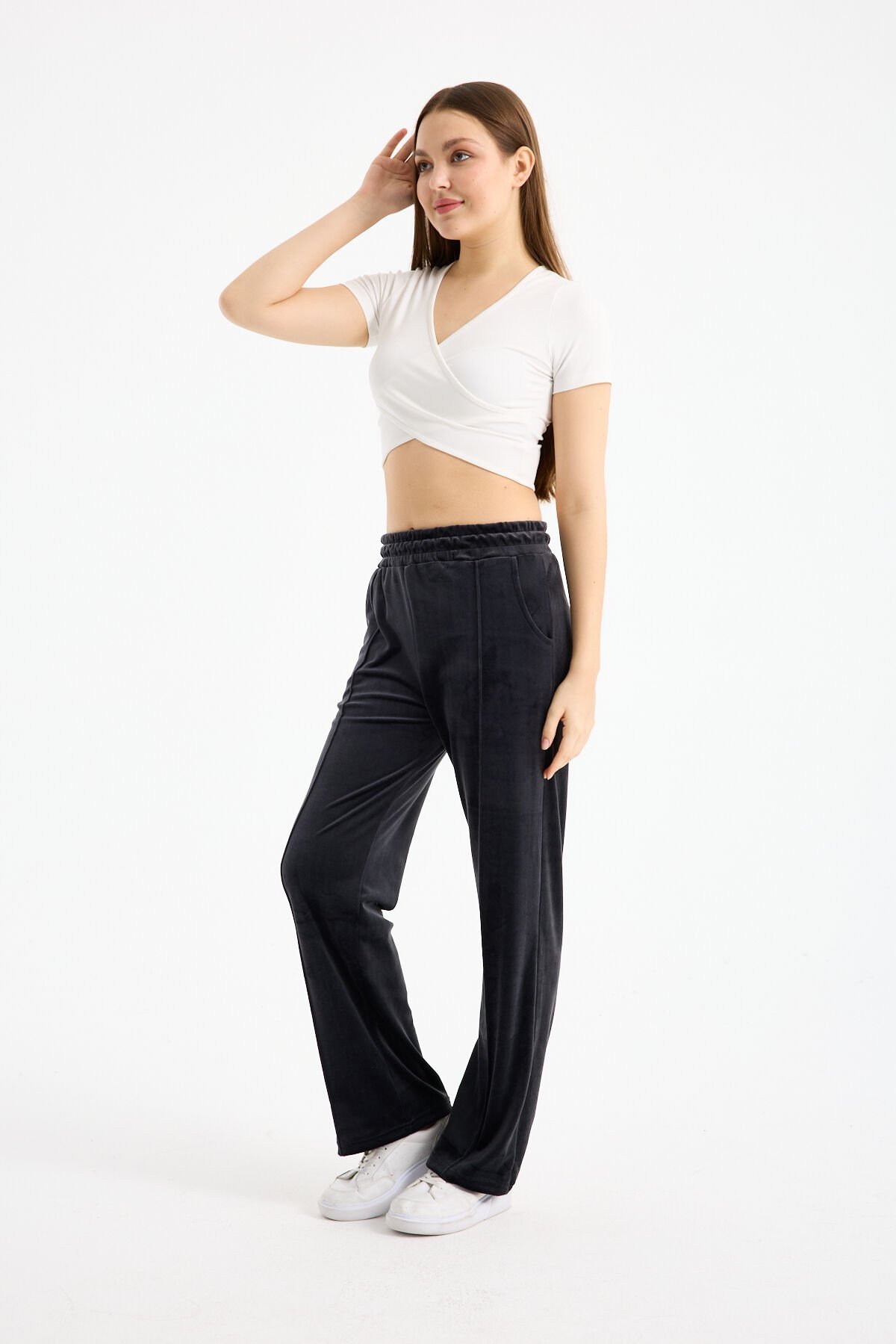 Kadın Geniş Paça Max Boy Kadife Pantolon 2251 XL - KÜLSİYAH