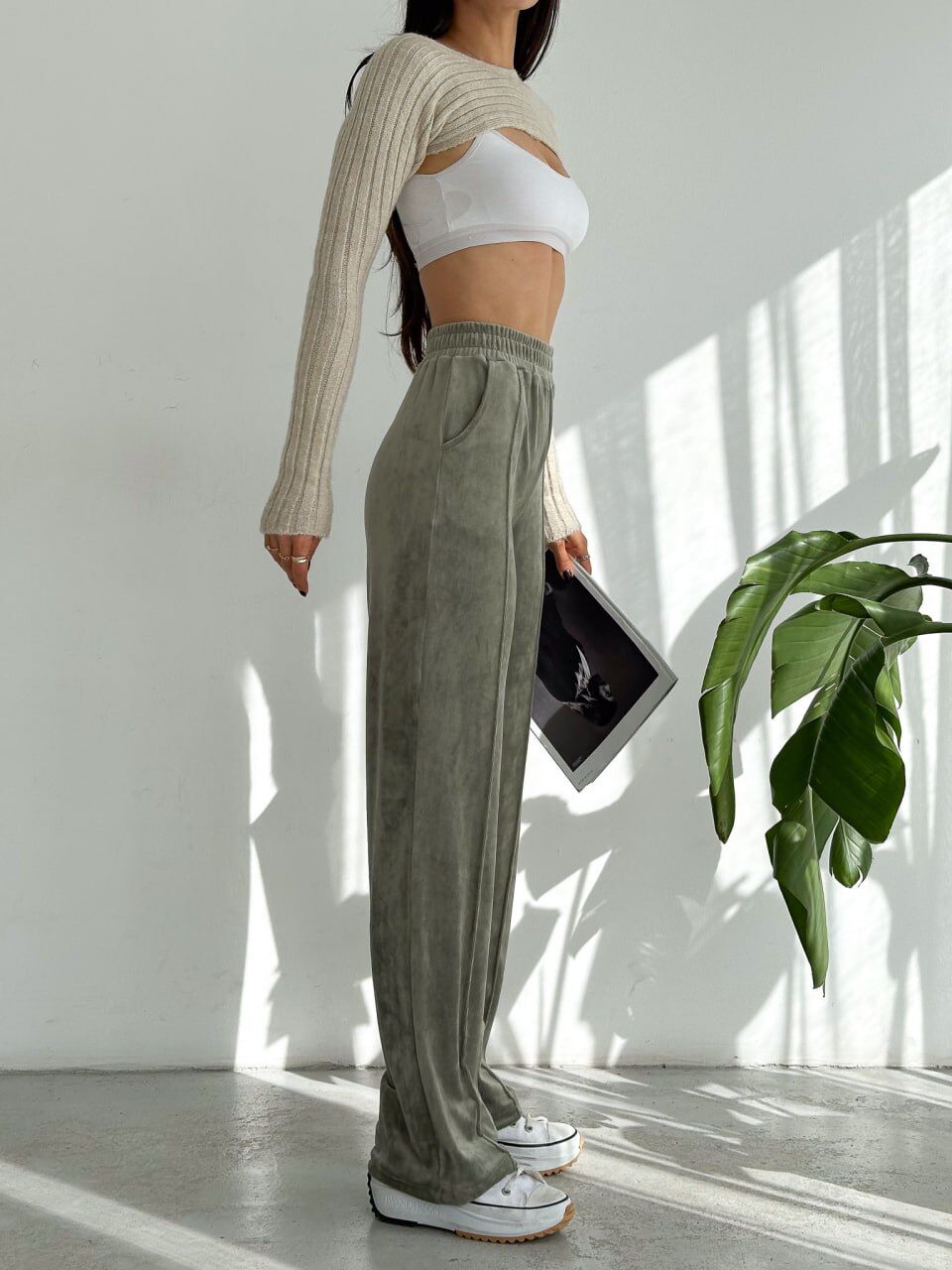 Kadın Geniş Paça Max Boy Kadife Pantolon 2251 XS - ÇAĞLA YEŞİLİ