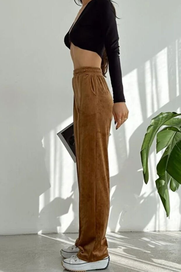 Kadın Geniş Paça Max Boy Kadife Pantolon 2251 XS - KAHVERENGİ