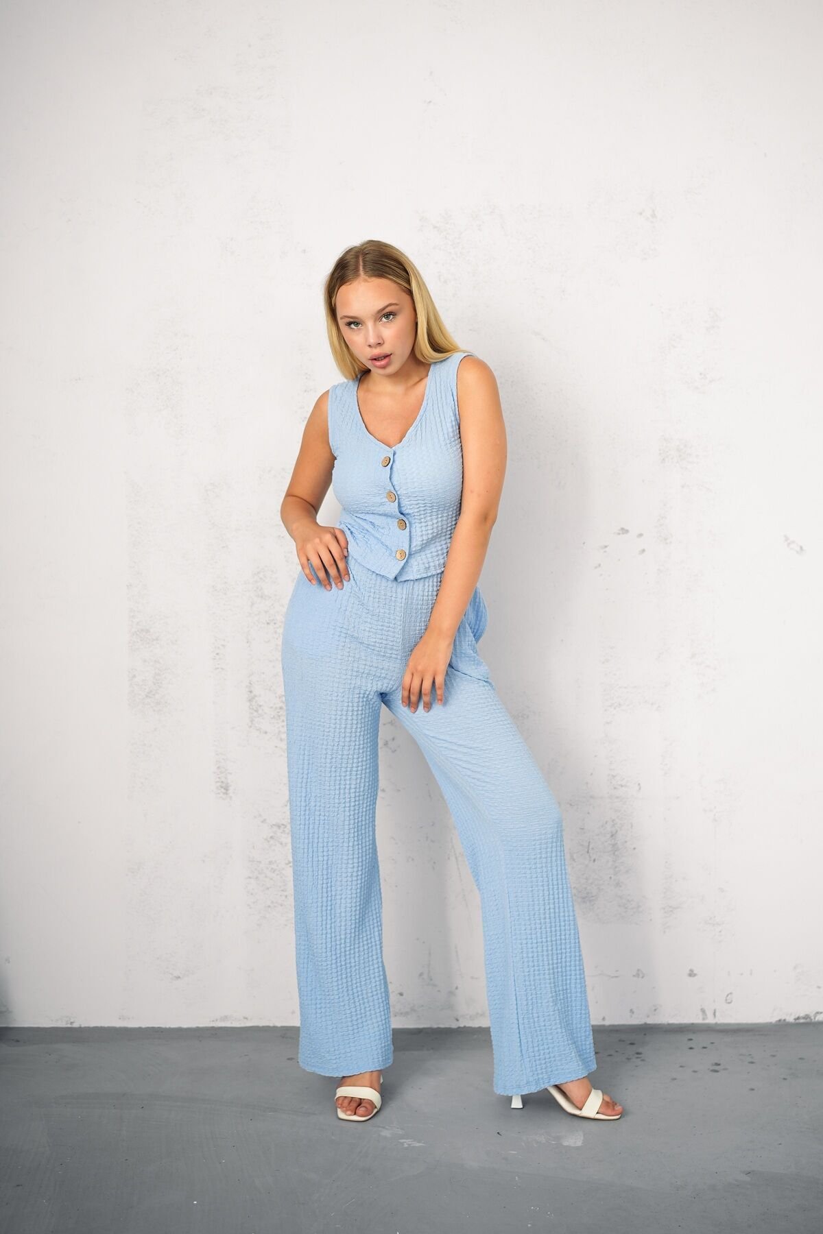 KADIN GOFRE TAKIM YELEKLİ - YELEK VE PANTOLON - YAZLIK TAKIM XL - BEBE MAVİSİ