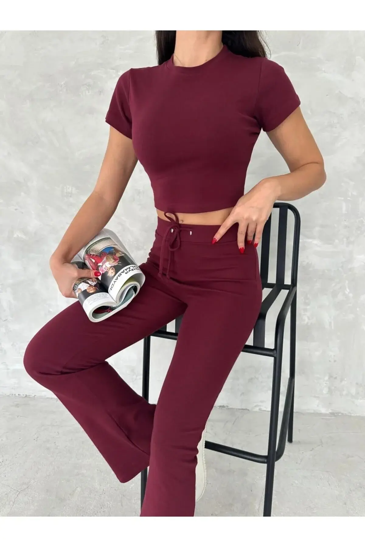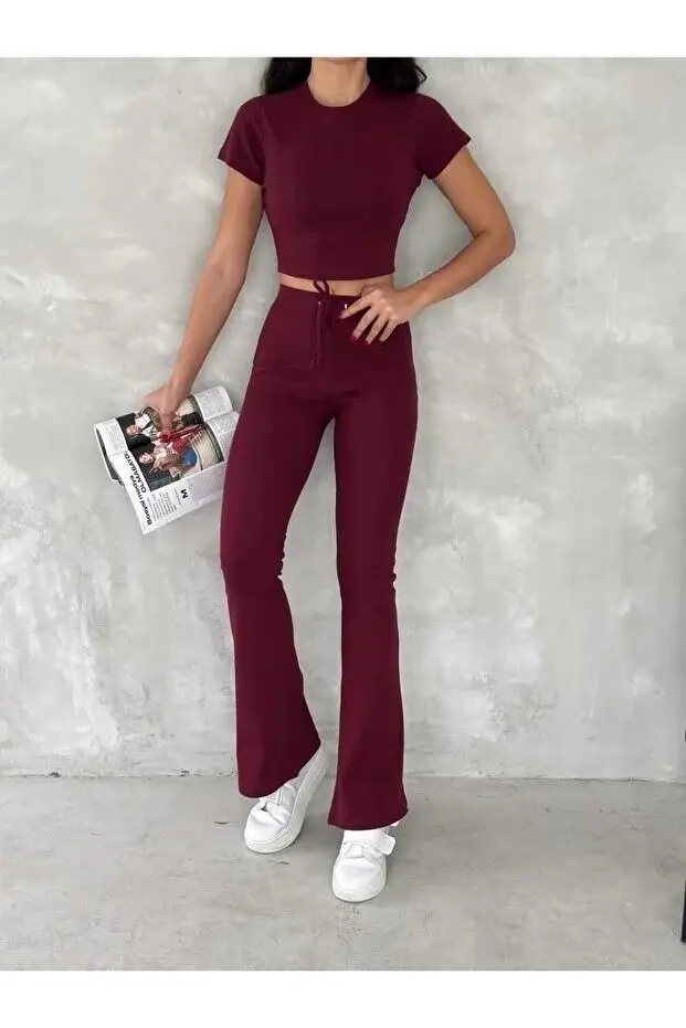 KADIN GÜNLÜK YADA SPOR TAKIM /ÜST KISA KOL BADY ALT İSPANYOL PANTOLON XL - BORDO