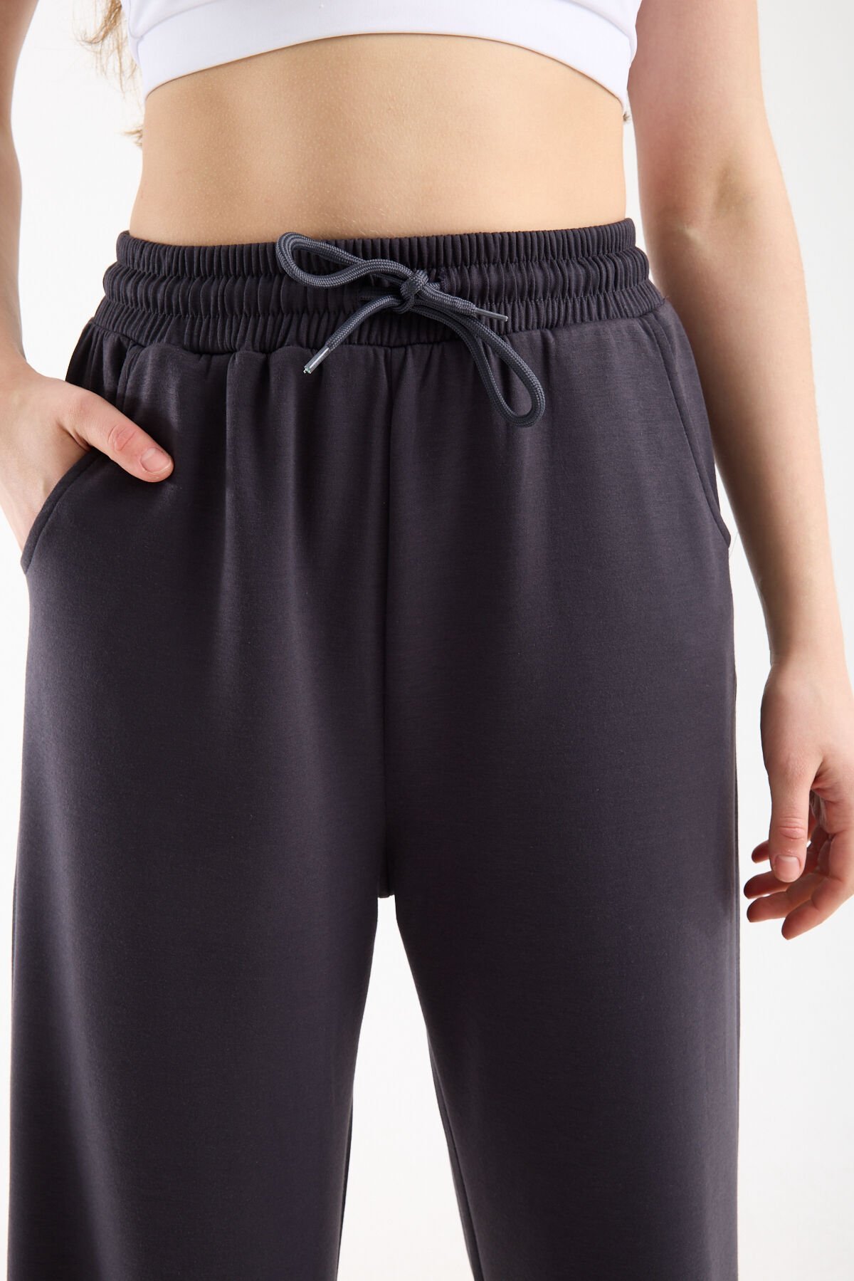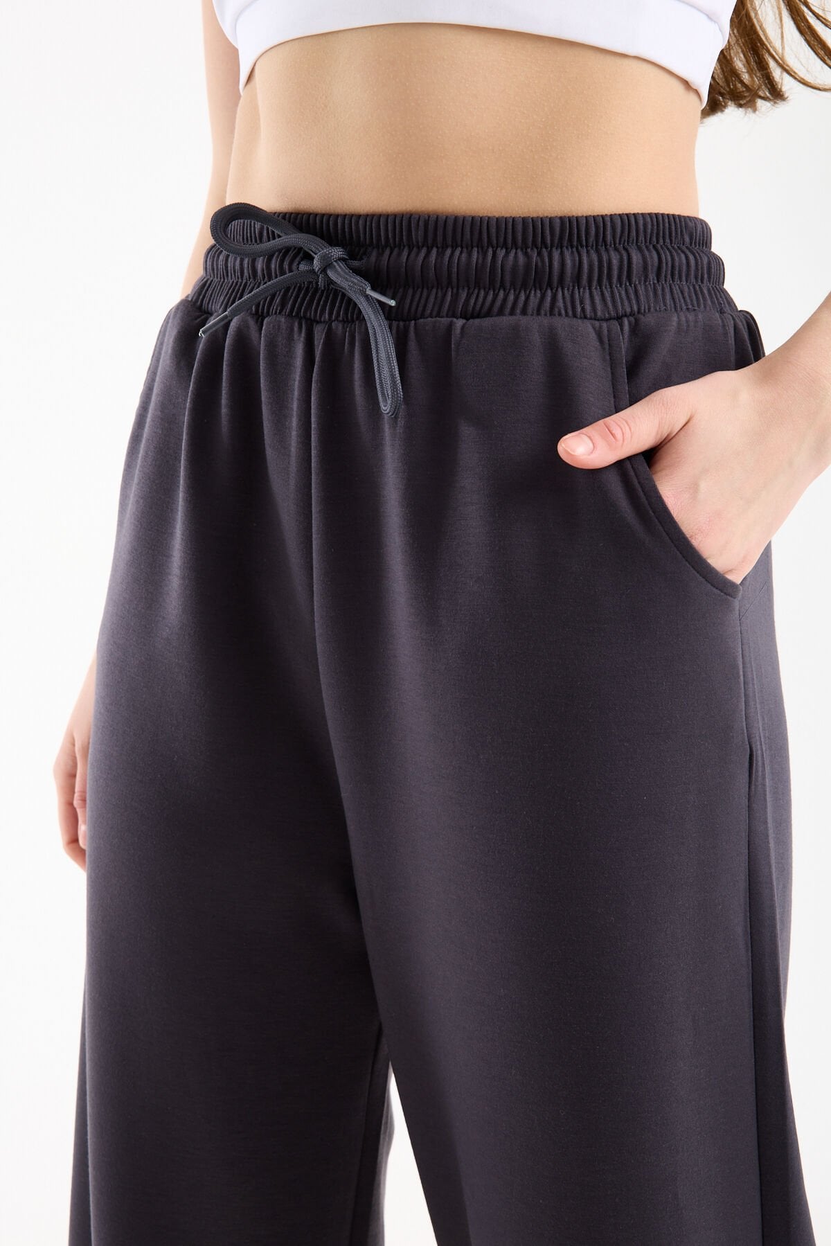 Yüksek bel pantolon yapısı vücut oranını dengeler, geniş paça formu ise modern ve akıcı bir görünüm sunar. Tüm sezon kullanıma uygun olan bu takım, hem şehir stilinde hem casual kombinlerde rahatlıkla tercih edilebilir.