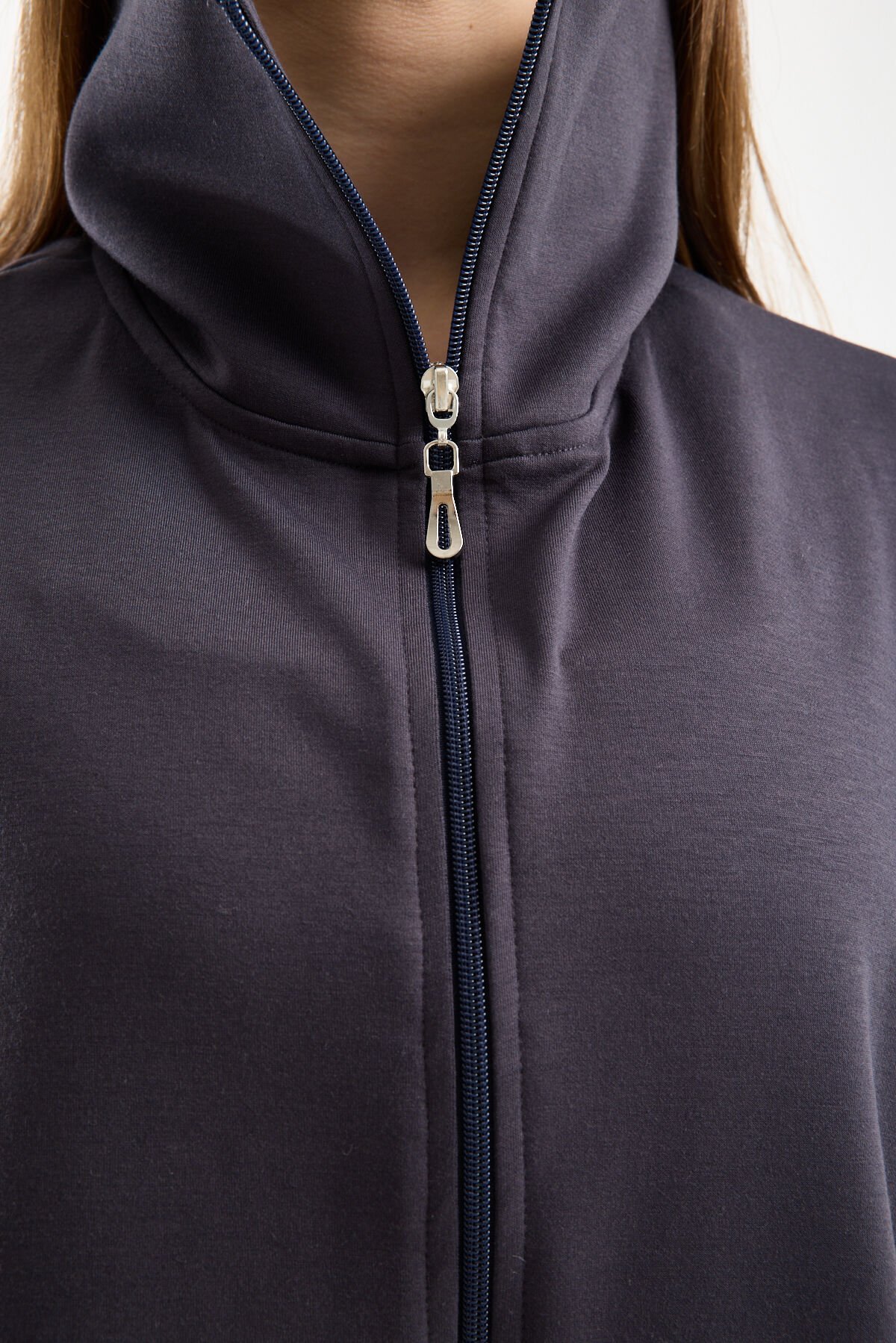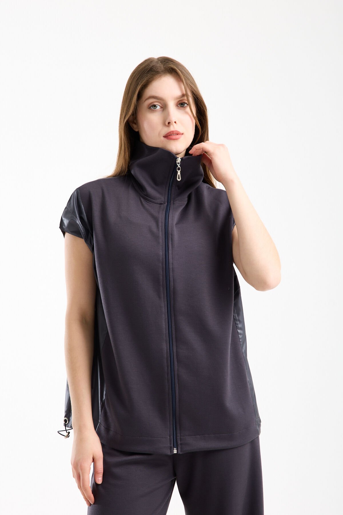 Modal ağırlıklı esnek kumaşı yumuşak dokusuyla gün boyu konfor sağlar. Dik yaka ve tam fermuarlı yelek tasarımı kombin özgürlüğü sunarken çift cep detayı fonksiyonellik kazandırır.