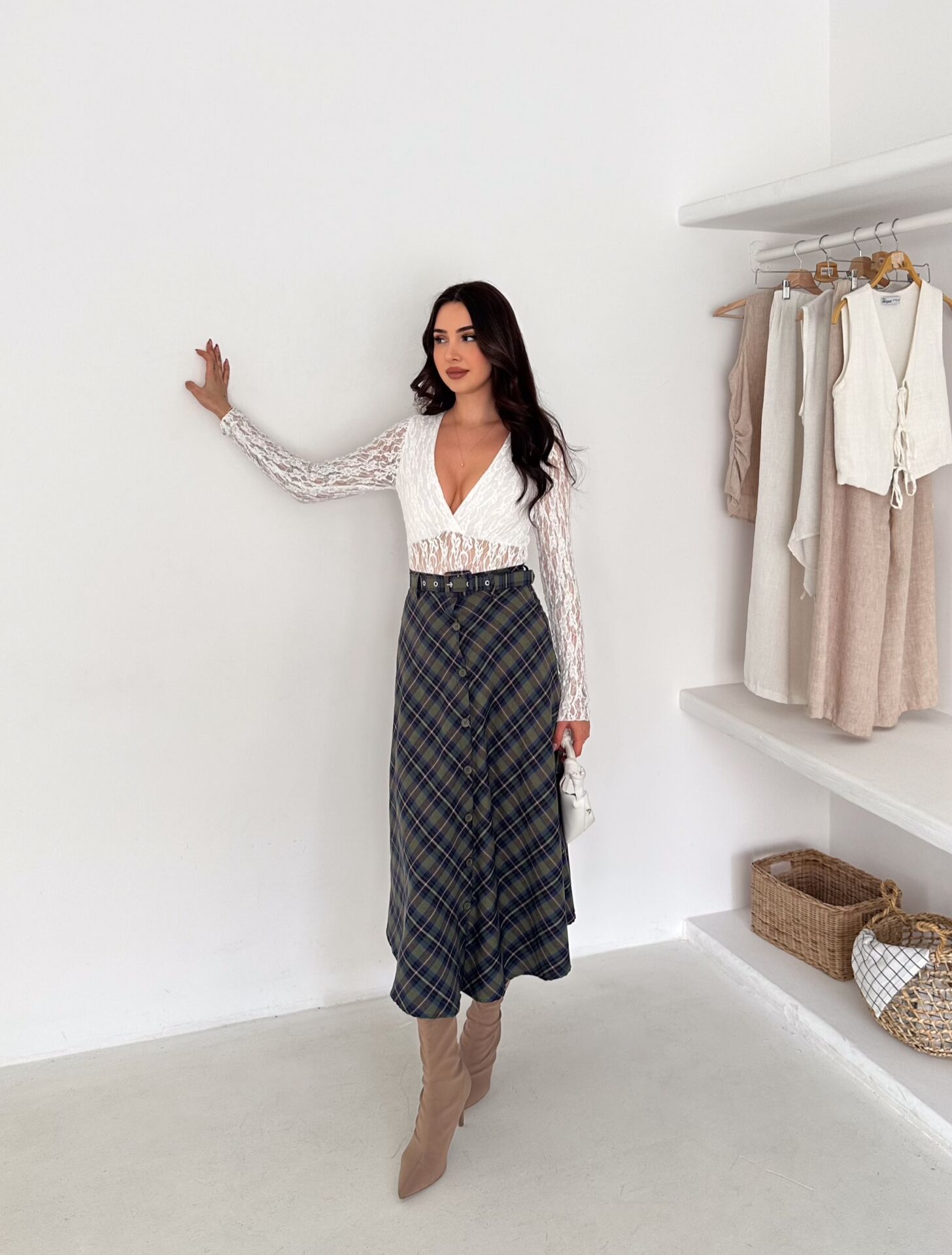 Kadın Önden Düğmeli Ekose Desenli Klasik Kesim Çan Etek 2608 XL - EKOSE DESENLİ 4
