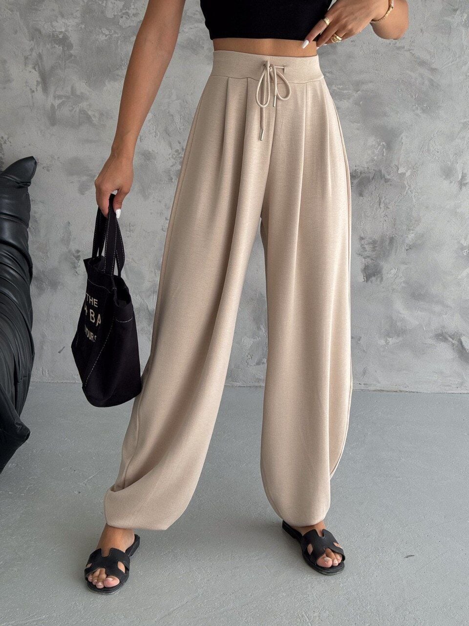 Günlük hayatta hem rahat hem zarif görünmek isteyen kadınlar için tasarlanan bu özel model, wide leg boru paça formu, yüksek bel yapısı ve likralı penye örme kumaşı ile gün boyu konfor sağlar. Bej tonunun sade şıklığı ile birleşen çift cepli tasarım, şıklığı fonksiyonellikle buluşturur.