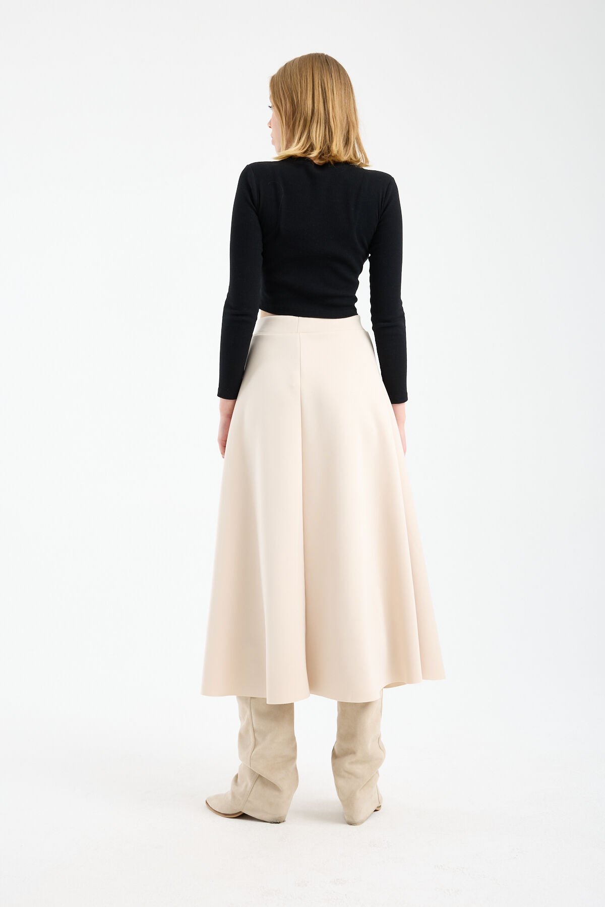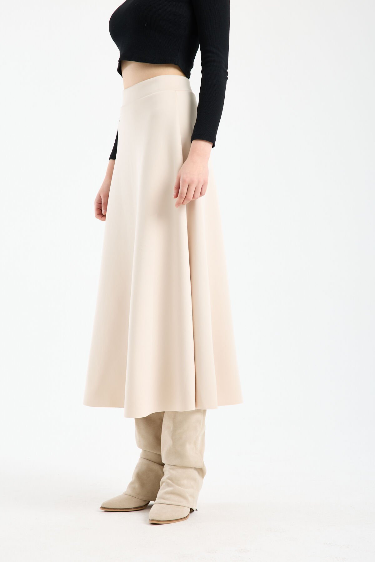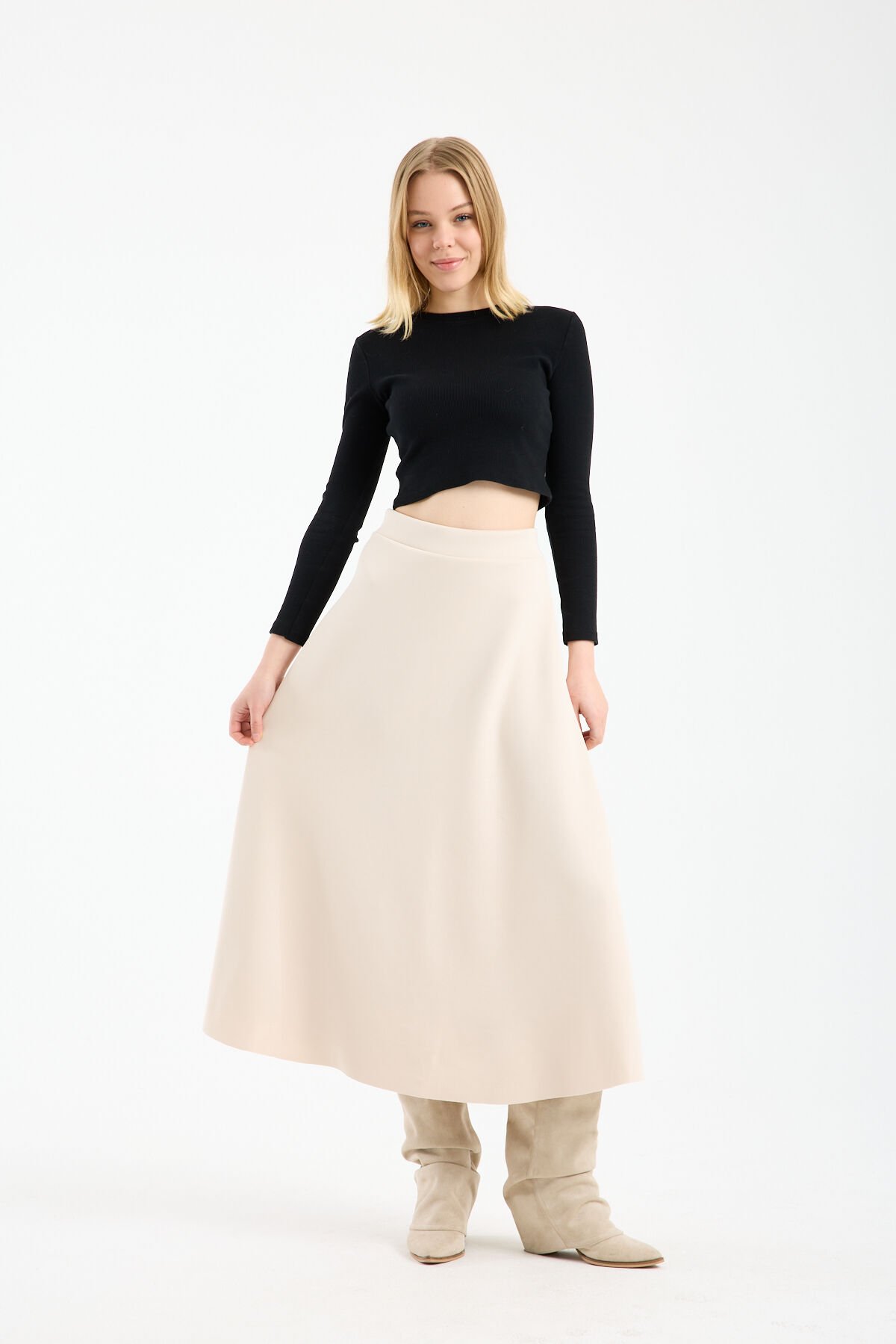 Kadın Scuba Dalgıç Kumaş Uzun Çan Etek Likralı Esnek Bel 2408 L - KREM