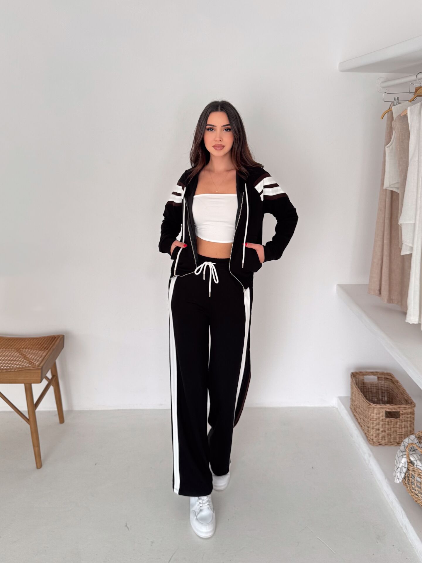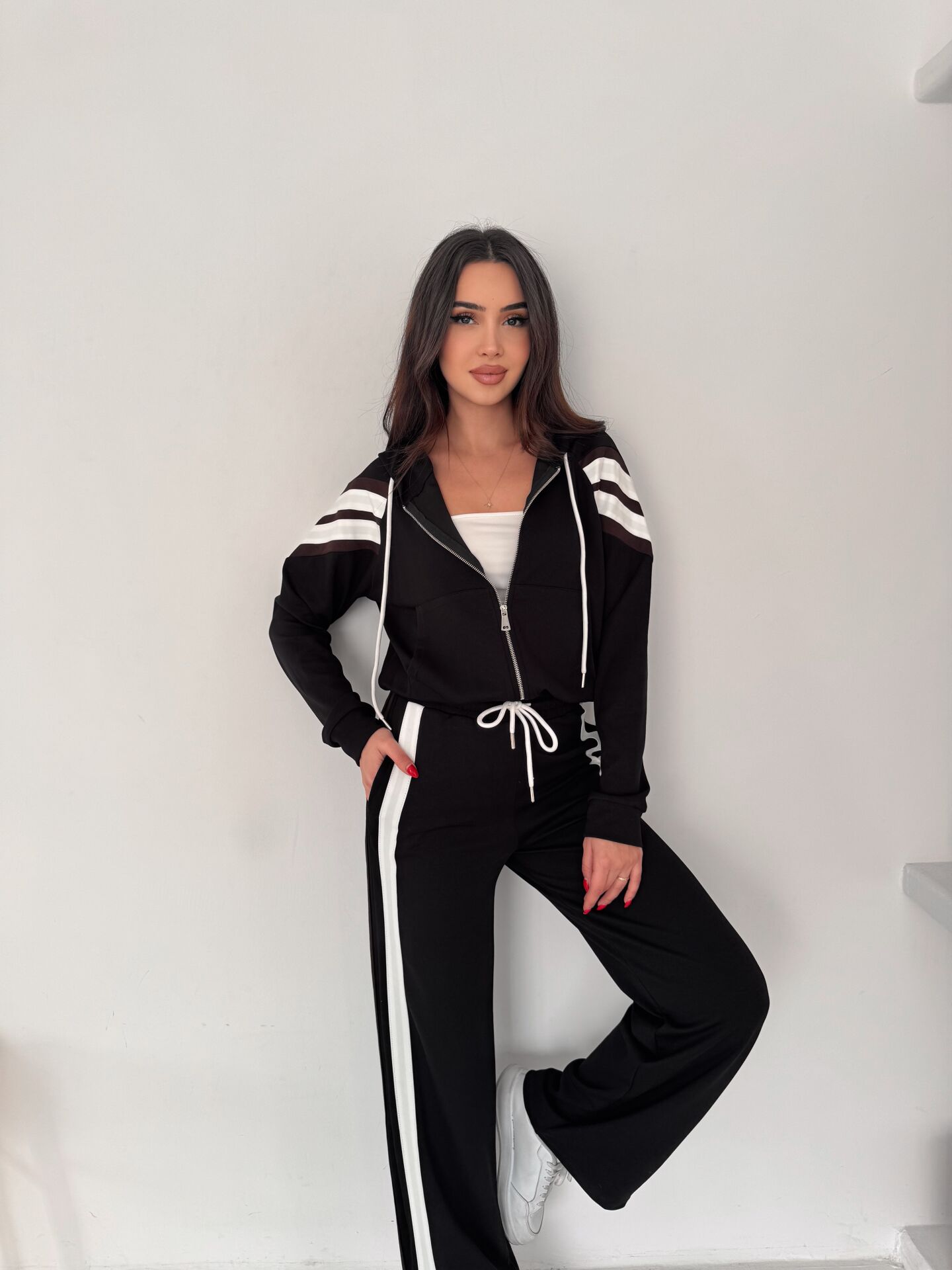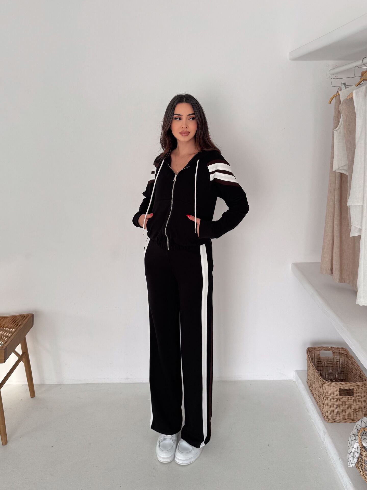 Kadın Şetirtli ve Kapüşonlu Modal Eşofman Takımı -6238 S - SİYAH