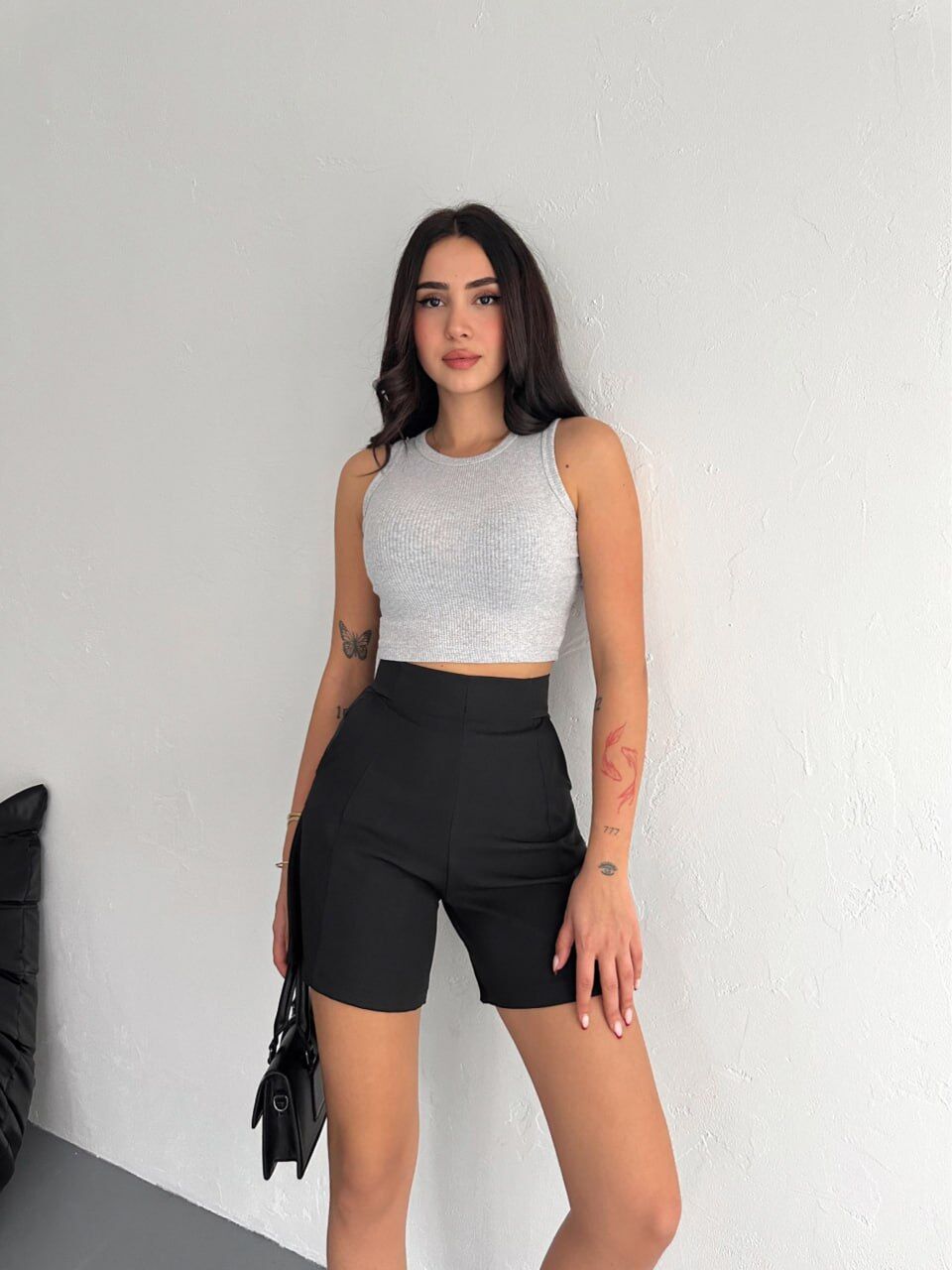Kadın Arka Fermuarlı Dokuma Kumaş Günlük ŞORT 2445 L - SİYAH