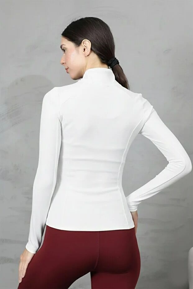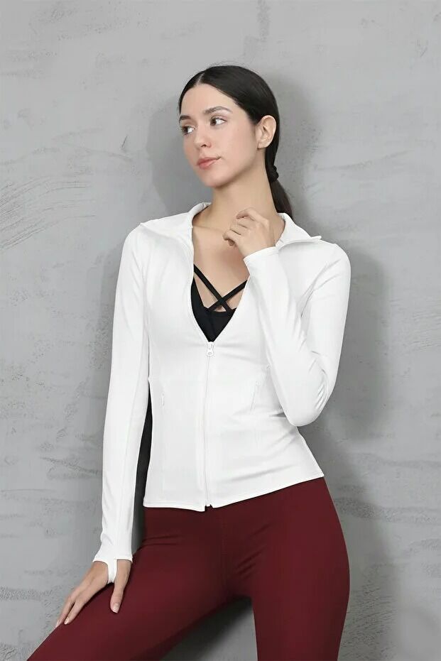 Kadın Spor Parmak Geçmeli Günlük ve Spor Moto Ceket T6 L - BEYAZ