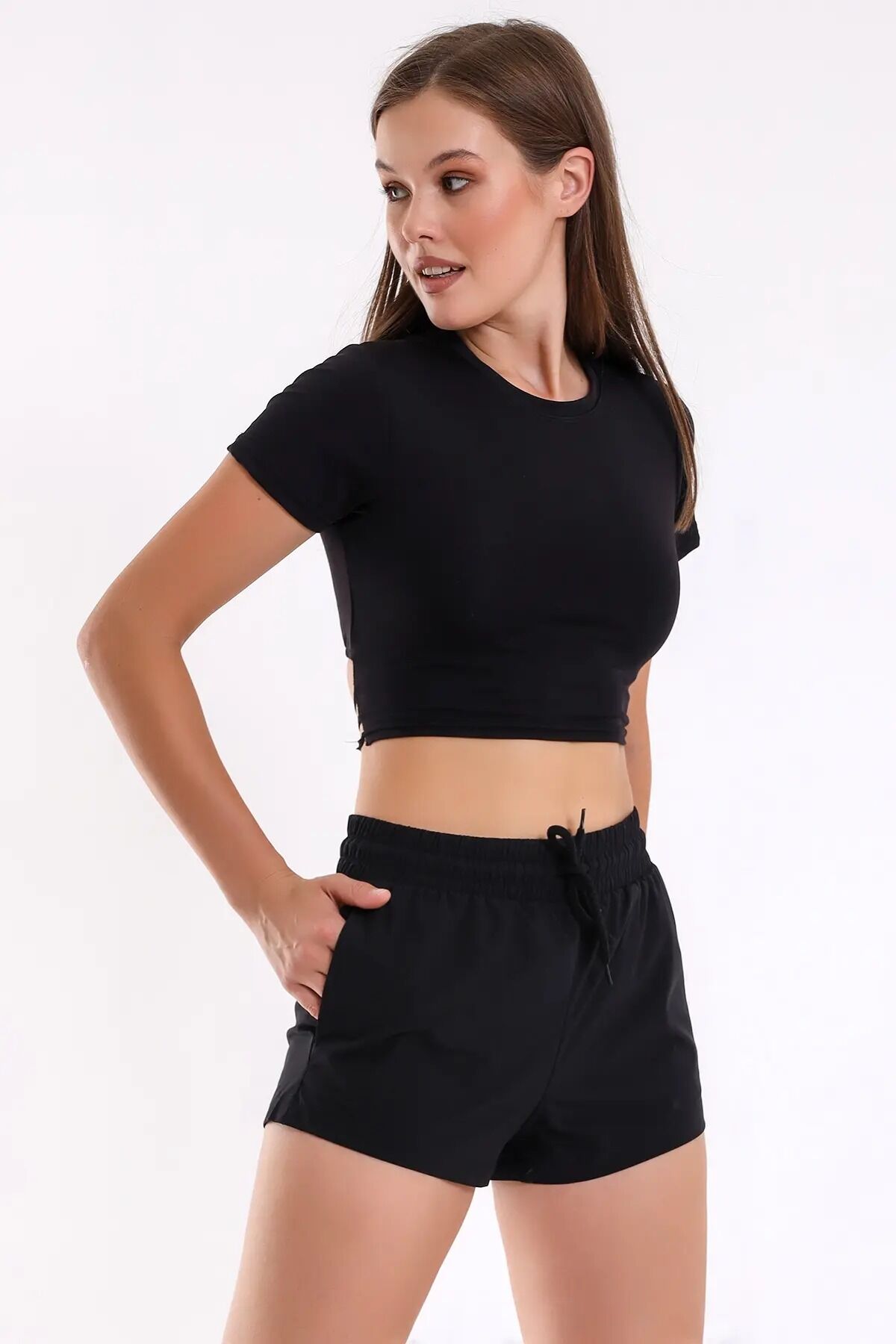 Kadın Basic Likralı Cebli Sporcu Şort WM M - SİYAH