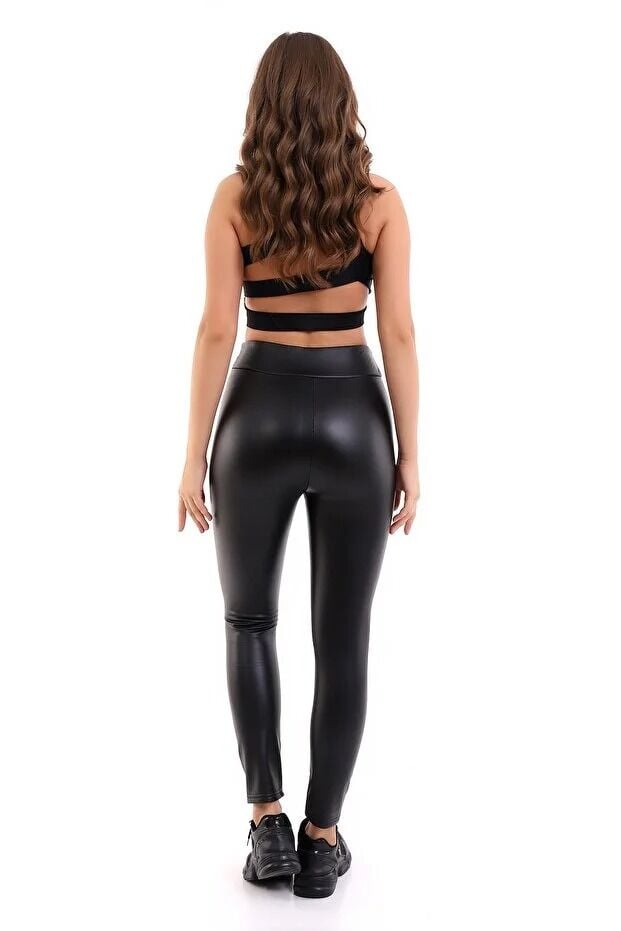 Kadın Suni Deri İçi Kürklü Tayt 1487 XL - SİYAH