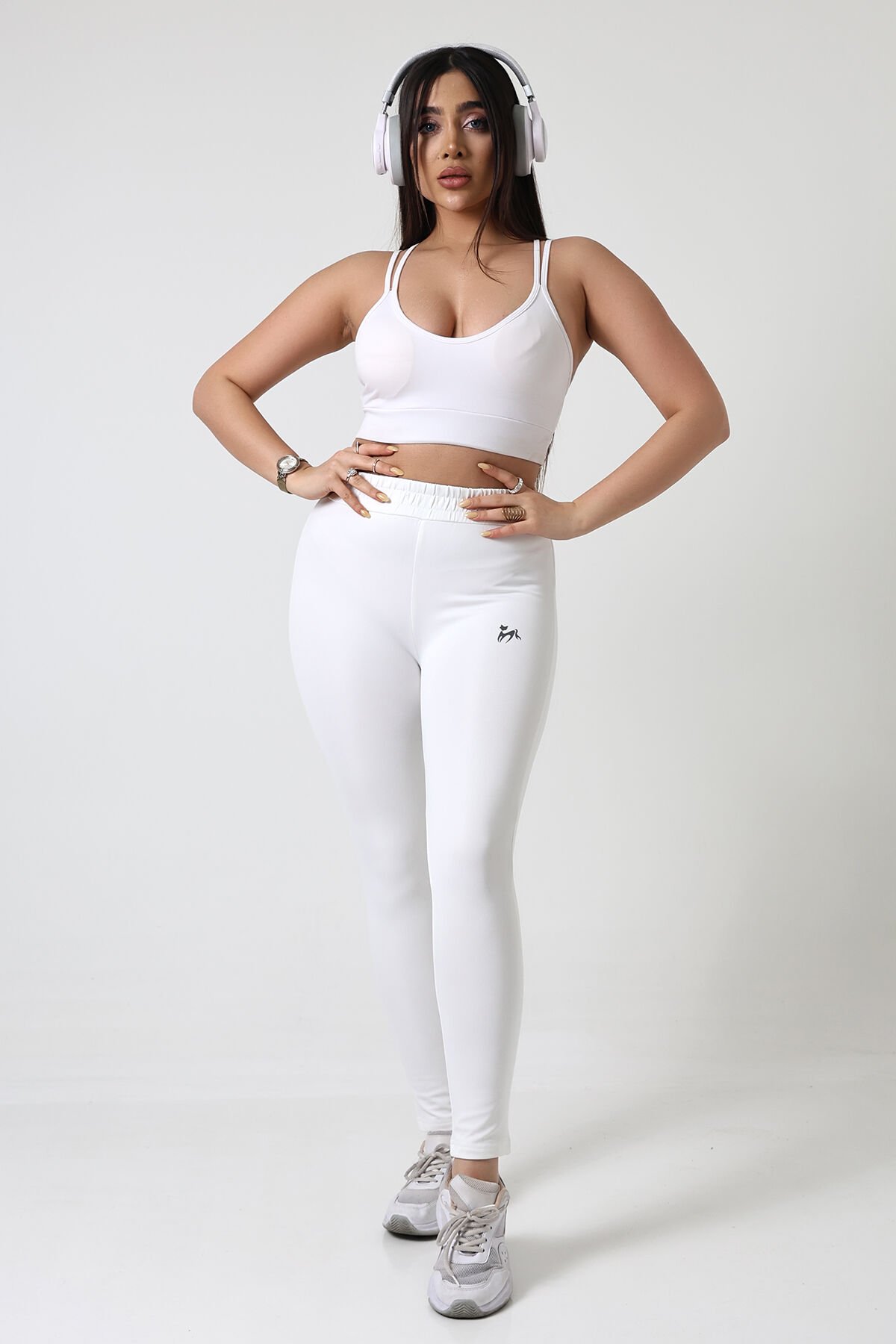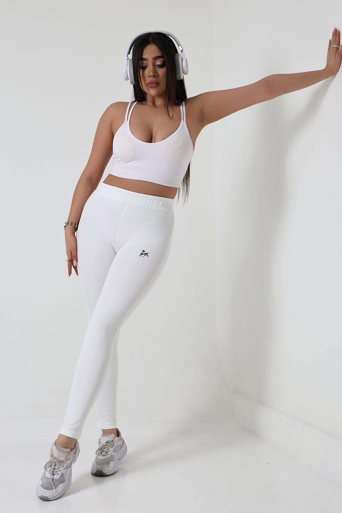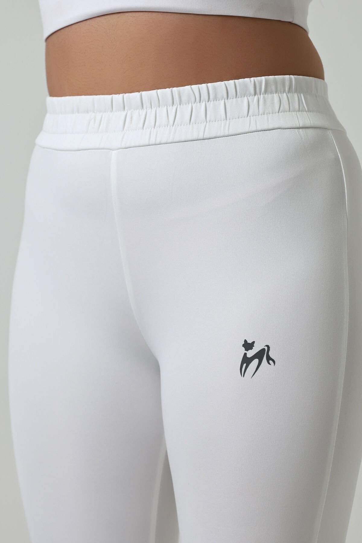 Kadın Orta Bel Likralı Kumaş Tayt Eşofman WM L - BEYAZ