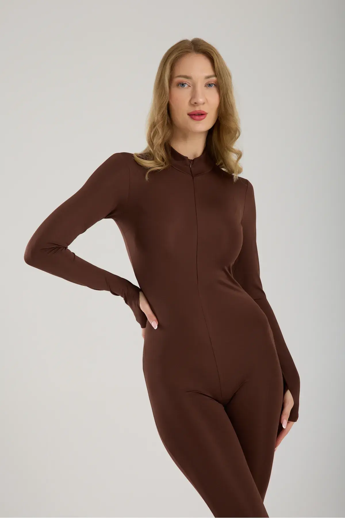 Kadın Uzun Spor ve Günlük Düz Dalgıç Tulum Tayt WM 2XL - KAHVERENGİ