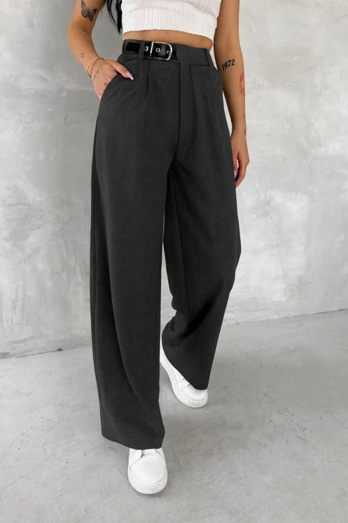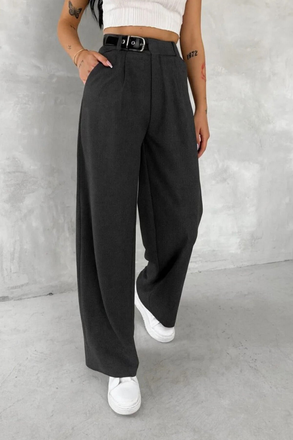 Günlük kombinlerden casual ofis stiline kadar farklı kullanım alanları sunan Kadın Yan Kemerli Toka Detaylı Baggy Kumaş Pantolon, basic tişört, crop üst veya gömleklerle kolayca kombinlenebilir. Tüm sezonlar boyunca gardırobunuzun vazgeçilmez parçalarından biri olmaya adaydır.