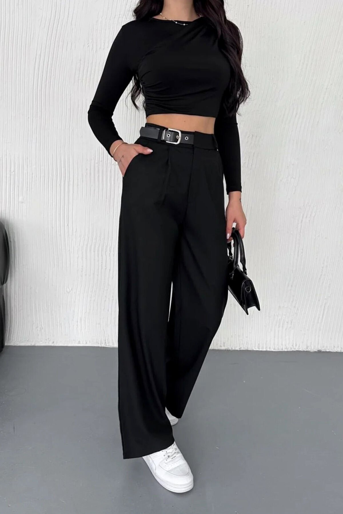 Günlük kombinlerden casual ofis stiline kadar farklı kullanım alanları sunan Kadın Yan Kemerli Toka Detaylı Baggy Kumaş Pantolon, basic tişört, crop üst veya gömleklerle kolayca kombinlenebilir. Tüm sezonlar boyunca gardırobunuzun vazgeçilmez parçalarından biri olmaya adaydır.