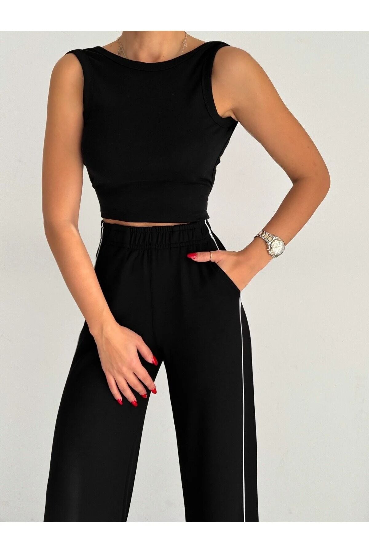 Yan şerit ve biyeli detaylarla zenginleştirilen bu eşofman altı, klasik spor giyim anlayışını modern bir çizgiyle yorumlar. Siyah rengi sayesinde farklı üst parçalarla kolayca kombinlenebilir. Ter tutmayan örme kumaşı, gün boyu ferahlık hissi sunarken selanik dokuma yapısı formunu uzun süre korur.