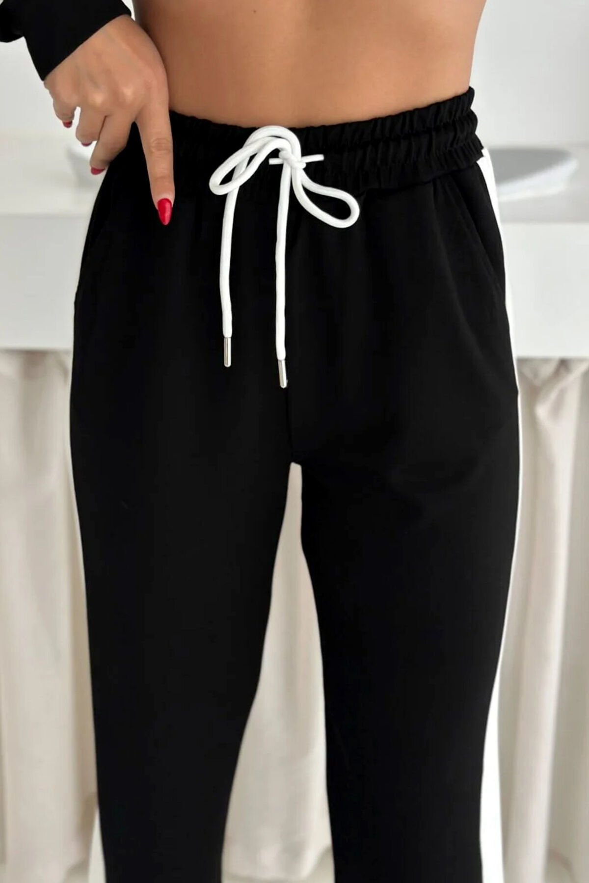 Kadın Yanları Beyaz Şeritli Hafif Likralı ve Esnek Modal Eşofman Takımı 2577