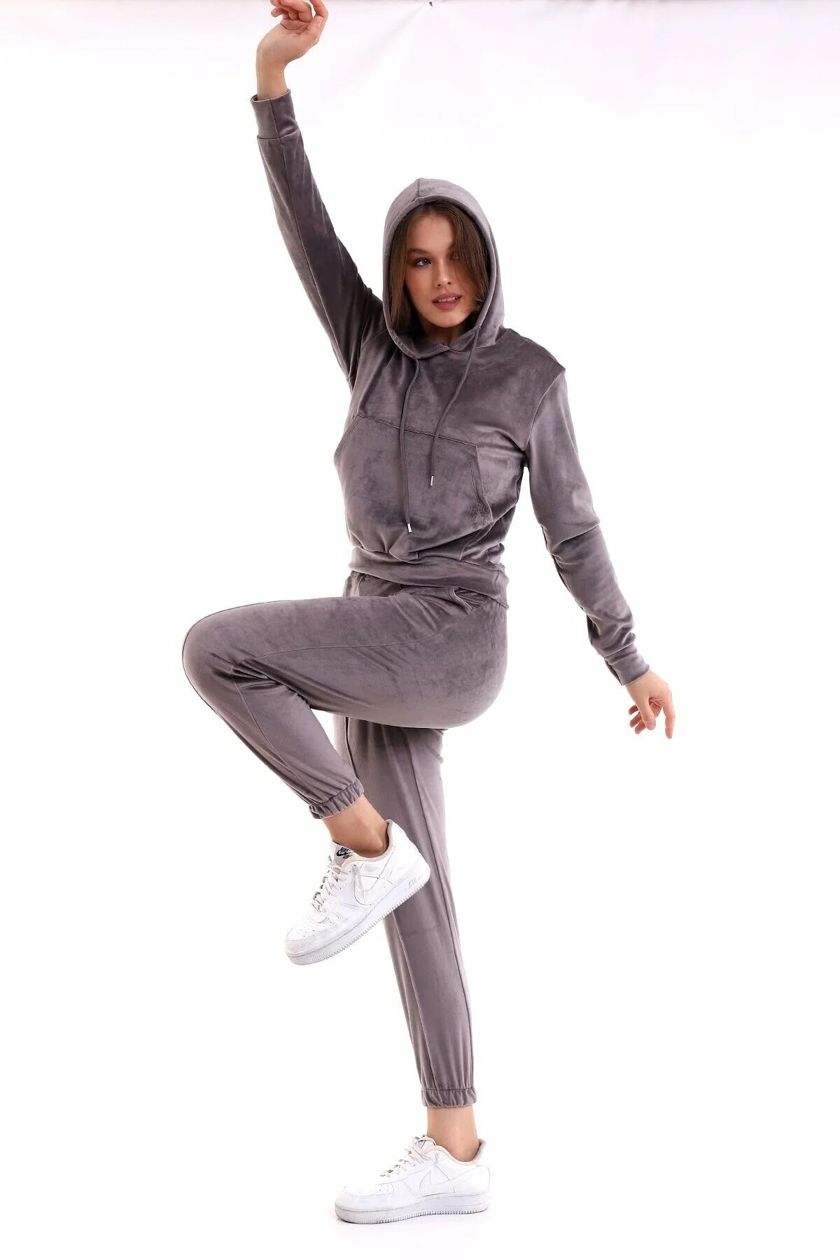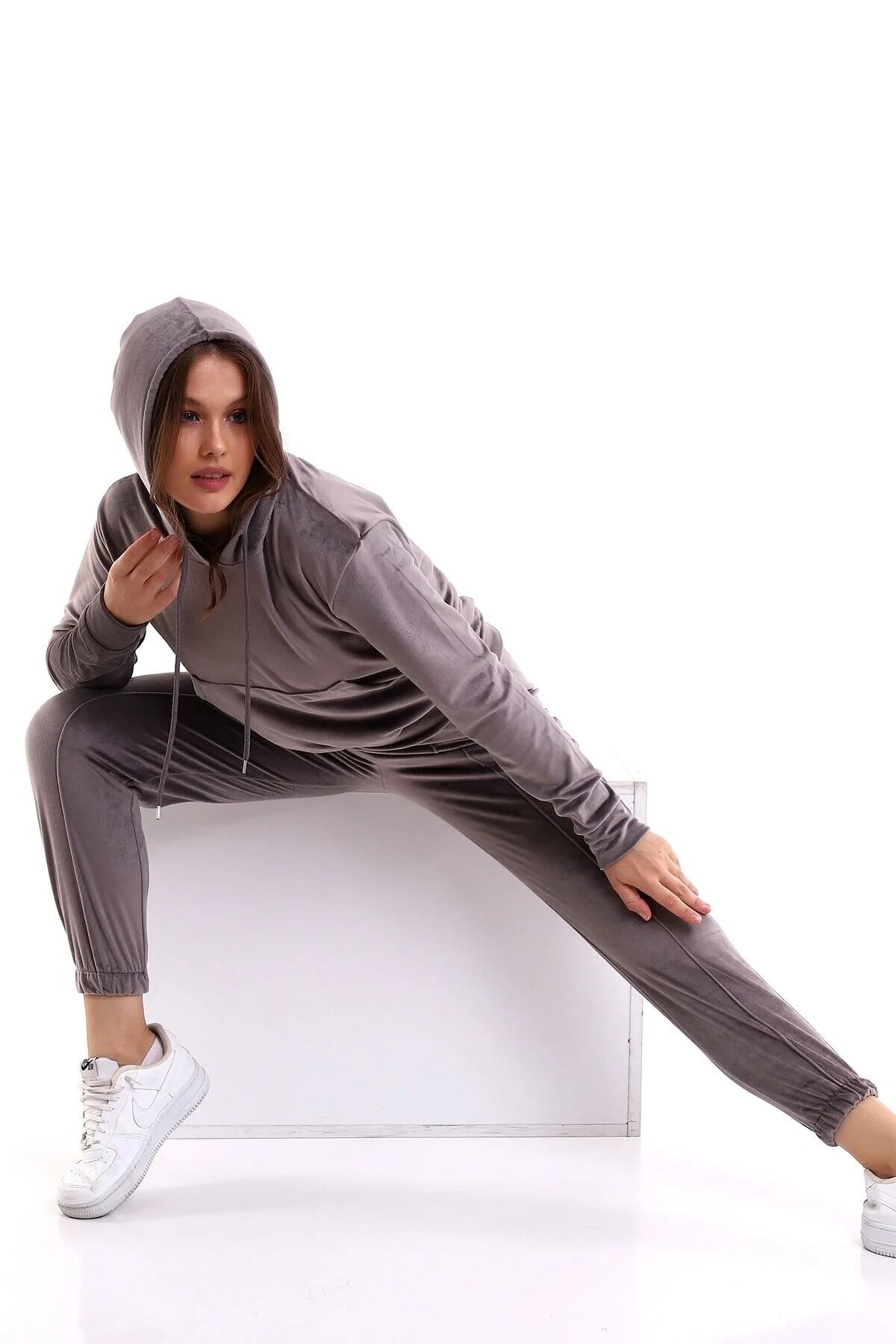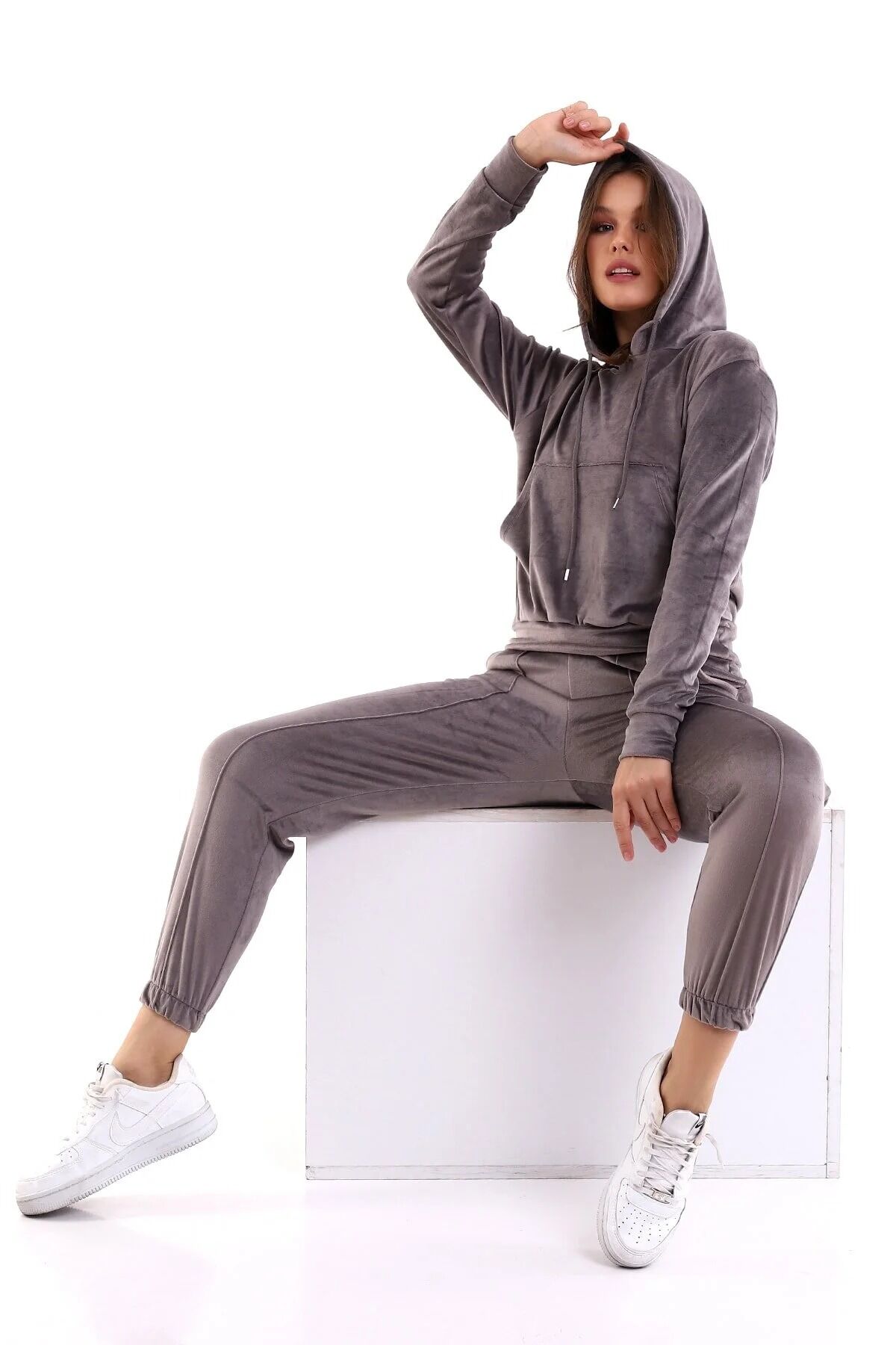 Kadın Yumoş Kadife Eşofman Takımı 6091 L - GRİ