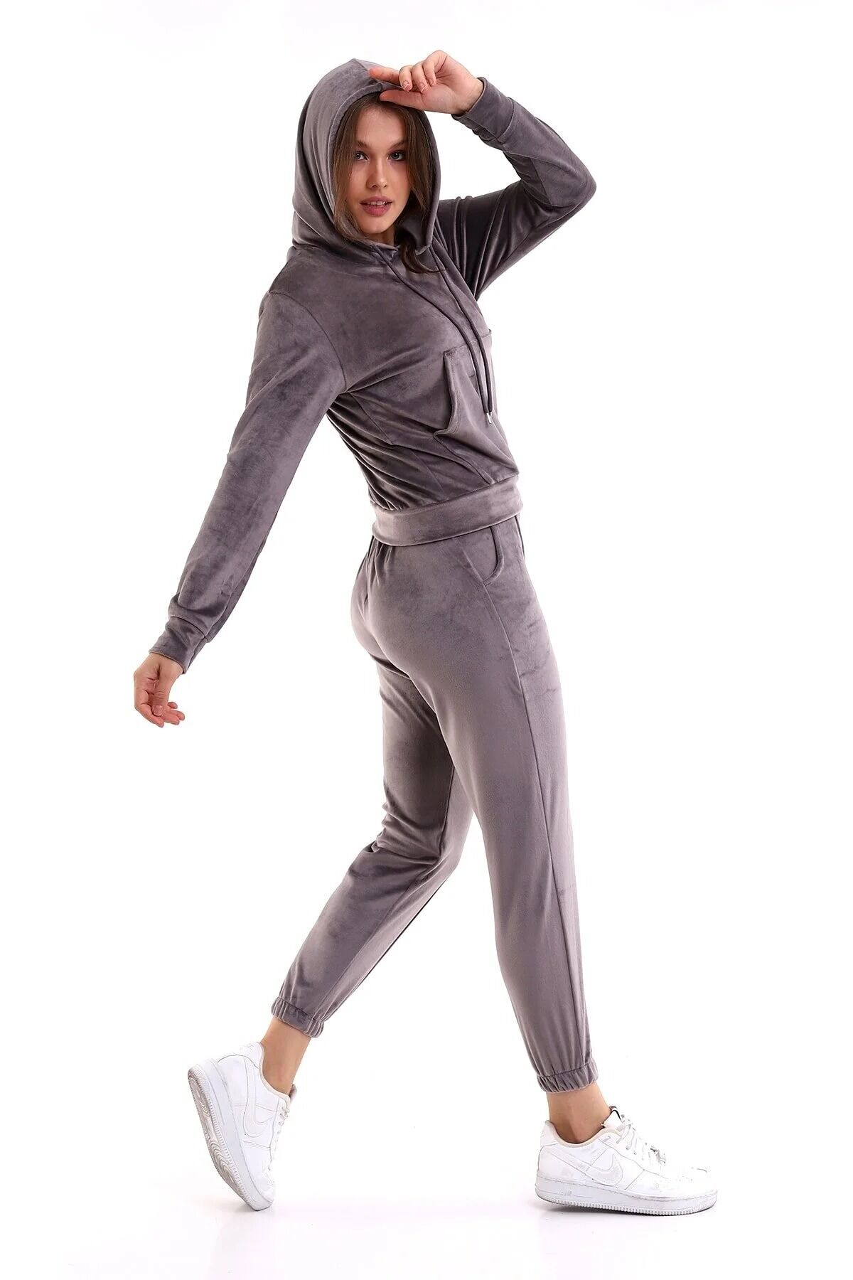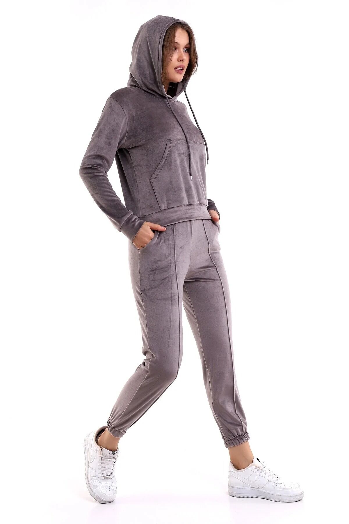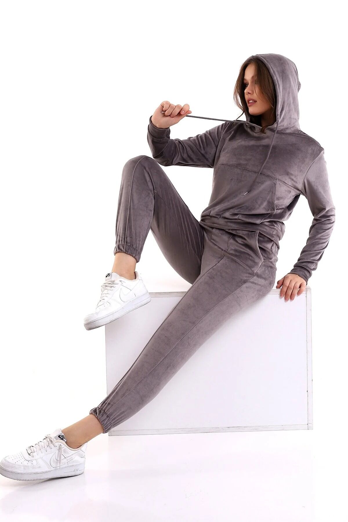 Kadın Yumoş Kadife Eşofman Takımı 6091 L - GRİ